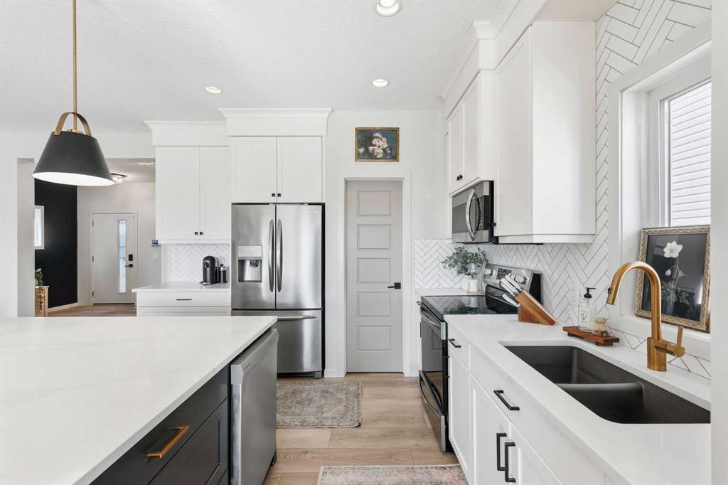 > > > PRICE IMPROVEMENT < < < Welcome to 221 Wildrose Drive — a stunning two-story home that blends thoughtful design, timeless style, and a true sense of warmth. Built in 2019, this 2,148 sq ft home sits in one of Strathmore’s most picturesque settings, backing onto the canal and walking path where you can listen to the peaceful sound of flowing water all summer long. Step inside to a bright and spacious entryway that connects beautifully to both the front attached garage and a large closet space. The main floor offers a functional and elegant layout — featuring a bright home office or den, a stylish half bath, and an open-concept living area filled with natural light. The kitchen is the heart of this home with its oversized square island, striking stylish lighting, walk-in pantry, and abundant storage. The dining area is framed by a large window, while the living room invites you to relax by the fireplace surrounded by windows that showcase the canal view. Upstairs, the primary retreat offers beautiful prairie and water views, a walk-in closet, and a spa-like ensuite with double vanity, soaker tub, and separate shower. A spacious bonus room, laundry with storage, two additional bedrooms, and a full bath complete the upper level. The fully developed basement continues the same elevated design — featuring a cozy family room with a shiplap-accented fireplace, a fitness area, a fourth bedroom, a full bathroom, and more storage. Step outside to enjoy a low-maintenance backyard with stunning stonework, a covered deck, and a custom pergola — the perfect spot to unwind while taking in the view of the canal and path behind. Wildrose is a welcoming, family-friendly community with access to parks, playgrounds, and pathways that connect seamlessly throughout town. Immaculate, light-filled, and move-in ready — this home truly shows like a show home and offers the perfect balance of style, comfort, and connection.