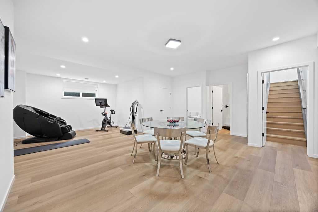Warm engineered hardwood floors, designer lighting, and a striking custom fireplace in the great room add depth and character to every space. The lower level continues to impress with three large bedrooms, two full bathrooms, a second washer and dryer, and plenty of room to relax or entertain.