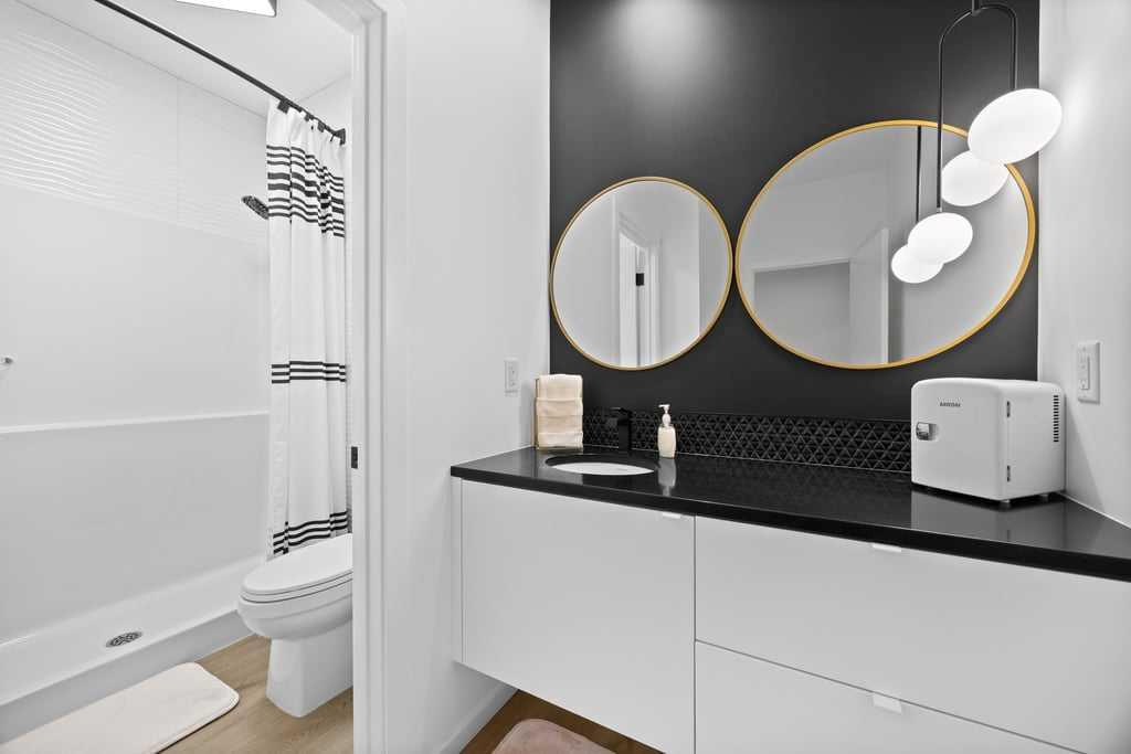 The primary suite is a true retreat, offering calming views, a walk-in closet, and a spa-inspired ensuite that blends luxury and function. Additional bedrooms provide versatility—whether for guests, a home office, or hobbies—each finished with the same refined touch found throughout the home.