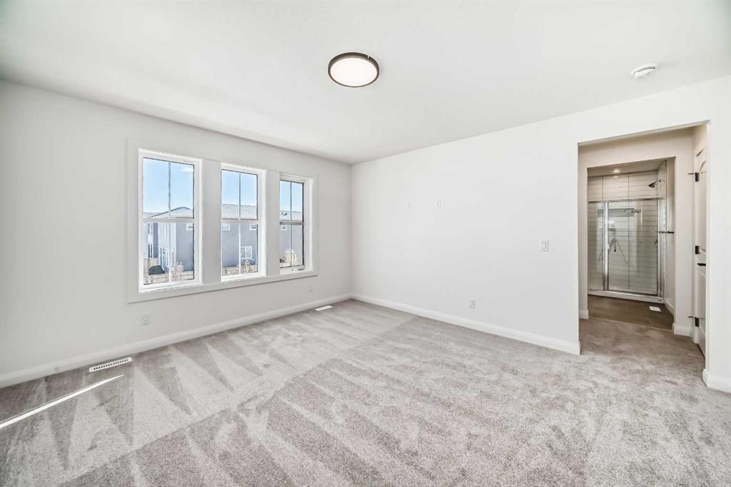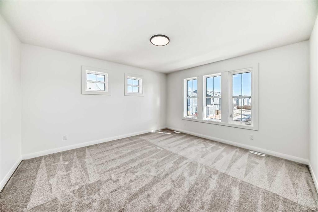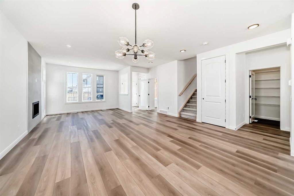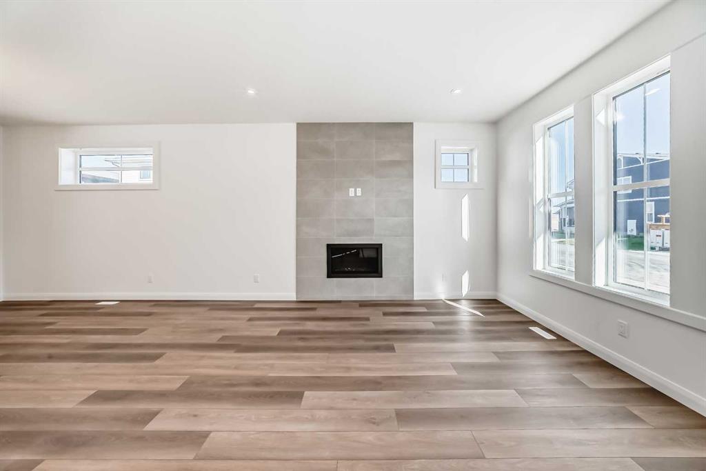 OPEN HOUSE SATURDAY 2-4PM *** Brand new and move-in ready! This 2,082 sq. ft. Broadview Homes build blends timeless style with thoughtful upgrades. The main floor offers a flexible front room ideal for an office and a sunlit living room with a stylish gas fireplace. The bright white kitchen features quartz counters and 42" upper cabinets finished to the ceiling with crown moulding. The stainless-steel appliance package includes a gas range, dishwasher, hood fan, and built-in microwave. A large walk-in pantry keeps everyday essentials organized. Upstairs you’ll find three bedrooms and two baths, including a primary retreat with a walk-in closet with a window and a luxurious 5-piece ensuite with double vanity, soaker tub, and roomy tiled shower. The lower level features 9' ceilings and is unfinished, ready for your design, with rough-in for a future bathroom. The west-facing backyard offers a 10' x 18' deck and a concrete sidewalk to the oversized double garage, providing ample parking and storage. Additional perks include rough-in for central vacuum. Set within Harmony, a sought-after lake community and bedroom community of Calgary, you are moments from parks, pathways, golf, and everyday amenities.