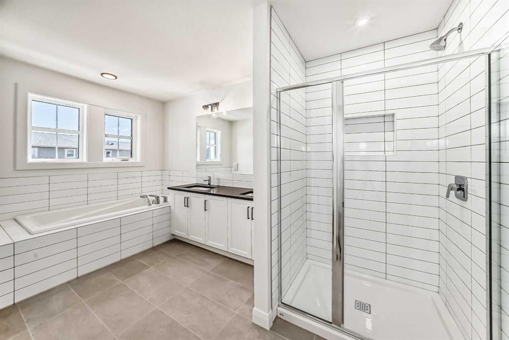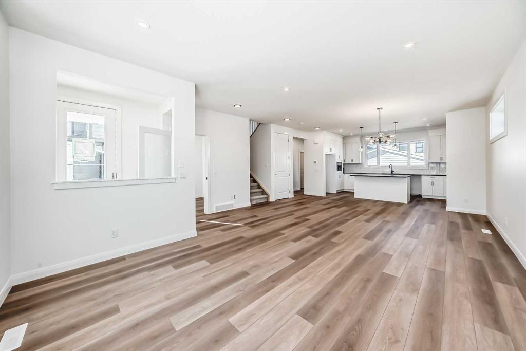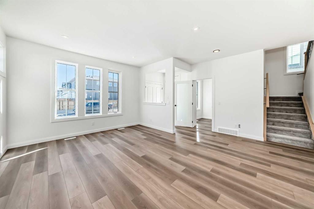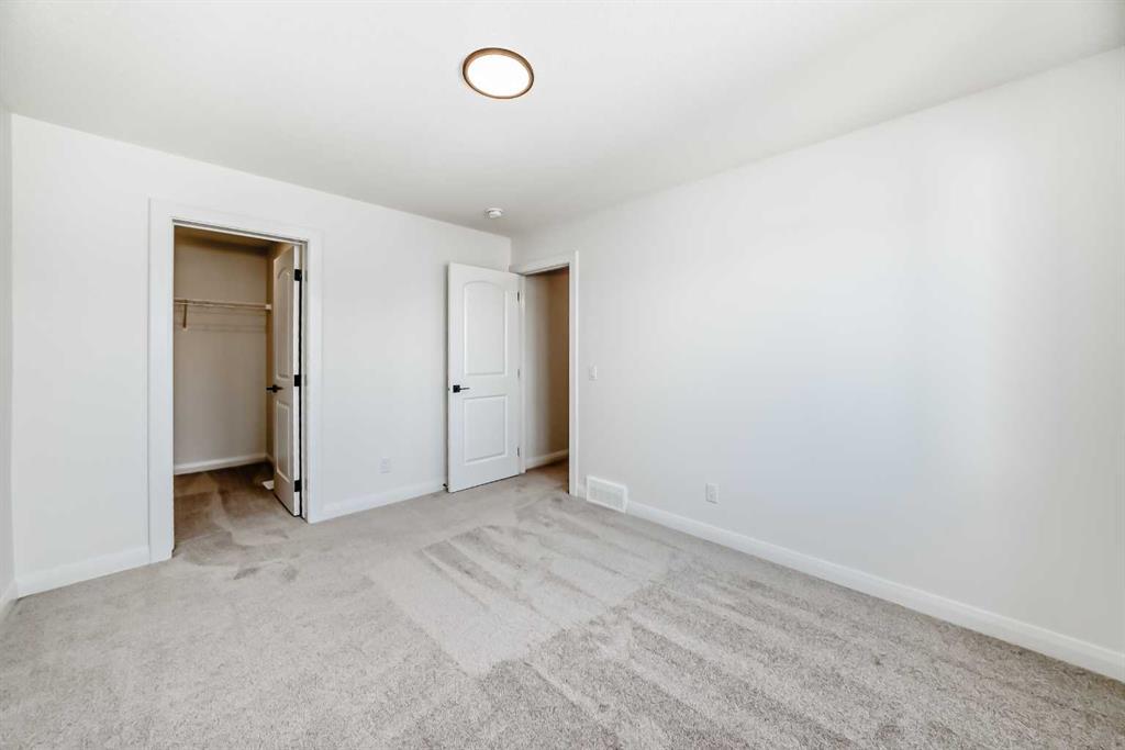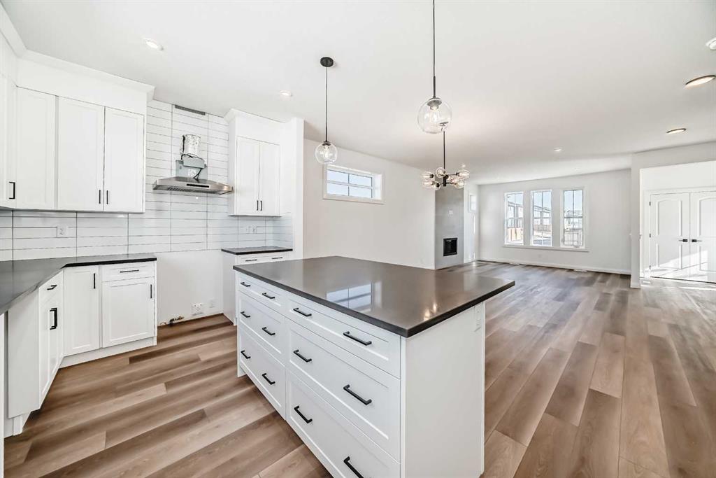 OPEN HOUSE SATURDAY 2-4PM *** Brand new and move-in ready! This 2,082 sq. ft. Broadview Homes build blends timeless style with thoughtful upgrades. The main floor offers a flexible front room ideal for an office and a sunlit living room with a stylish gas fireplace. The bright white kitchen features quartz counters and 42" upper cabinets finished to the ceiling with crown moulding. The stainless-steel appliance package includes a gas range, dishwasher, hood fan, and built-in microwave. A large walk-in pantry keeps everyday essentials organized. Upstairs you’ll find three bedrooms and two baths, including a primary retreat with a walk-in closet with a window and a luxurious 5-piece ensuite with double vanity, soaker tub, and roomy tiled shower. The lower level features 9' ceilings and is unfinished, ready for your design, with rough-in for a future bathroom. The west-facing backyard offers a 10' x 18' deck and a concrete sidewalk to the oversized double garage, providing ample parking and storage. Additional perks include rough-in for central vacuum. Set within Harmony, a sought-after lake community and bedroom community of Calgary, you are moments from parks, pathways, golf, and everyday amenities.
