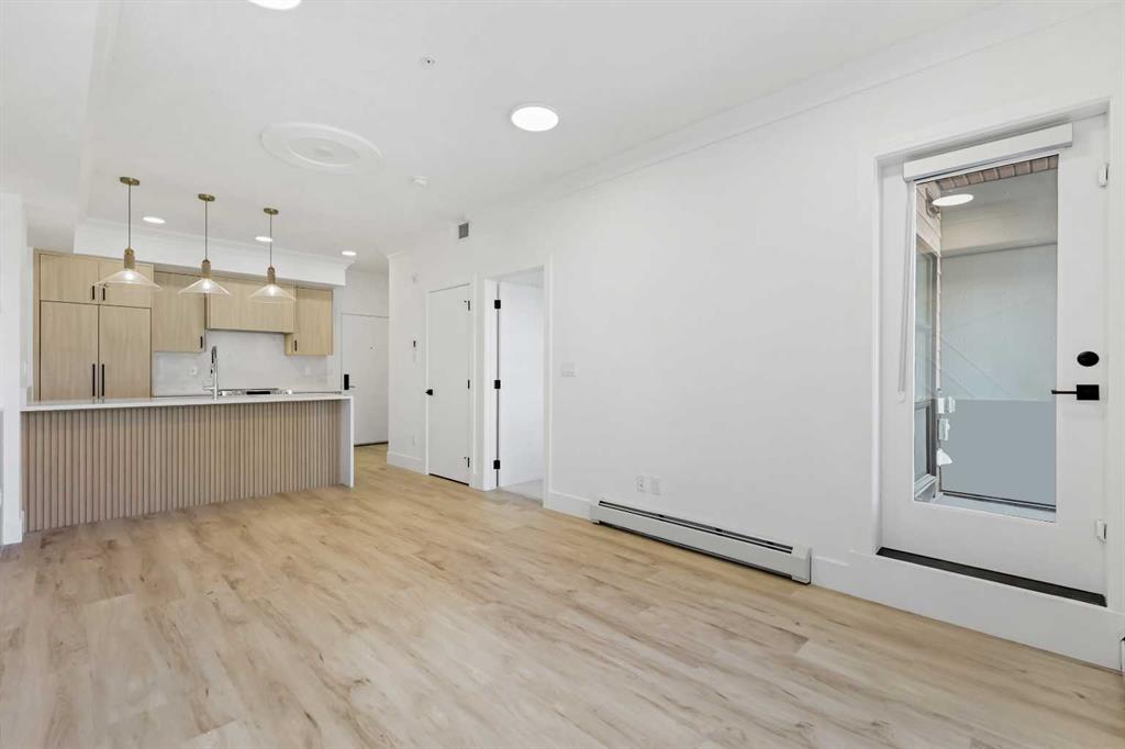 Experience elevated urban living in this brand-new, never-occupied 2-bedroom, 1-bathroom residence located in the highly desirable Currie Barracks community—one of Calgary’s most sought-after neighborhoods. Perfectly situated near Mount Royal University, this modern condo is ideal for professionals, students, or investors looking for exceptional rental potential in a prime location with Airbnb options upon approval. From the moment you step through the grand front entrance, you’ll be greeted by an atmosphere of modern sophistication. The open-concept layout features designer wall paneling in the living area, upgraded lighting, and an abundance of natural light streaming through large west-facing windows that lead to a spacious balcony overlooking the peaceful courtyard—the perfect place to unwind after a long day. The gourmet kitchen showcases custom cabinetry with matching panel-front fridge and dishwasher, sleek quartz countertops, stainless steel appliances, a gas cooktop, and a convenient breakfast bar ideal for casual dining. Every detail has been thoughtfully considered to blend functionality with style, offering ample cupboard and counter space to enhance everyday living. Both bedrooms are generously sized, providing flexibility for a guest room, home office, or roommate setup. The spa-inspired bathroom boasts modern fixtures and a quartz-topped vanity, while the stacked in-suite laundry offers everyday convenience. Additional highlights include luxury vinyl plank flooring, A/C rough-in for future cooling, and secure building access for peace of mind. Residents of Currie Barracks enjoy a vibrant, walkable lifestyle surrounded by boutique shops, cafés, parks, and pathways. Commuting is effortless with quick access to major routes and public transit, and you’re only minutes from downtown Calgary and local golf courses for leisure and recreation. Whether you’re seeking a luxurious urban retreat or a turnkey investment property, this pristine unit offers a perfect blend of style, convenience, and modern living in an unbeatable location.