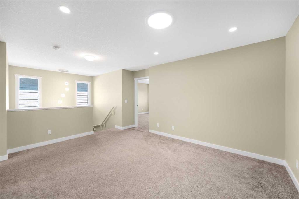 The upper level features a spacious centre Bonus Room with a solar tube skylight — the ideal space to unwind or enjoy family movie nights. The Primary Bedroom enjoys elevated views from the higher ground and features a large walk-in closet and a 4-piece ensuite with extended counter space for a makeup vanity, a soaker tub, and a standing shower with built-in seat. Two additional well-sized Bedrooms — each with walk-in closets — are served by a 4-piece Bathroom. A thoughtfully designed Laundry Room with closet organizers completes this level.