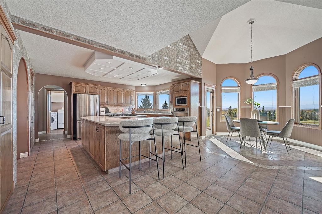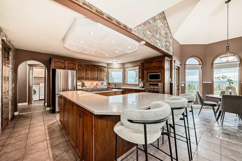 breathtaking estate where sophistication meets serenity, just 30 minutes from downtown Calgary and moments from Okotoks. Set on nearly 5 acres of beautifully landscaped land, this custom-built two-storey home captures the essence of country elegance with panoramic mountain views that stretch endlessly across the horizon.