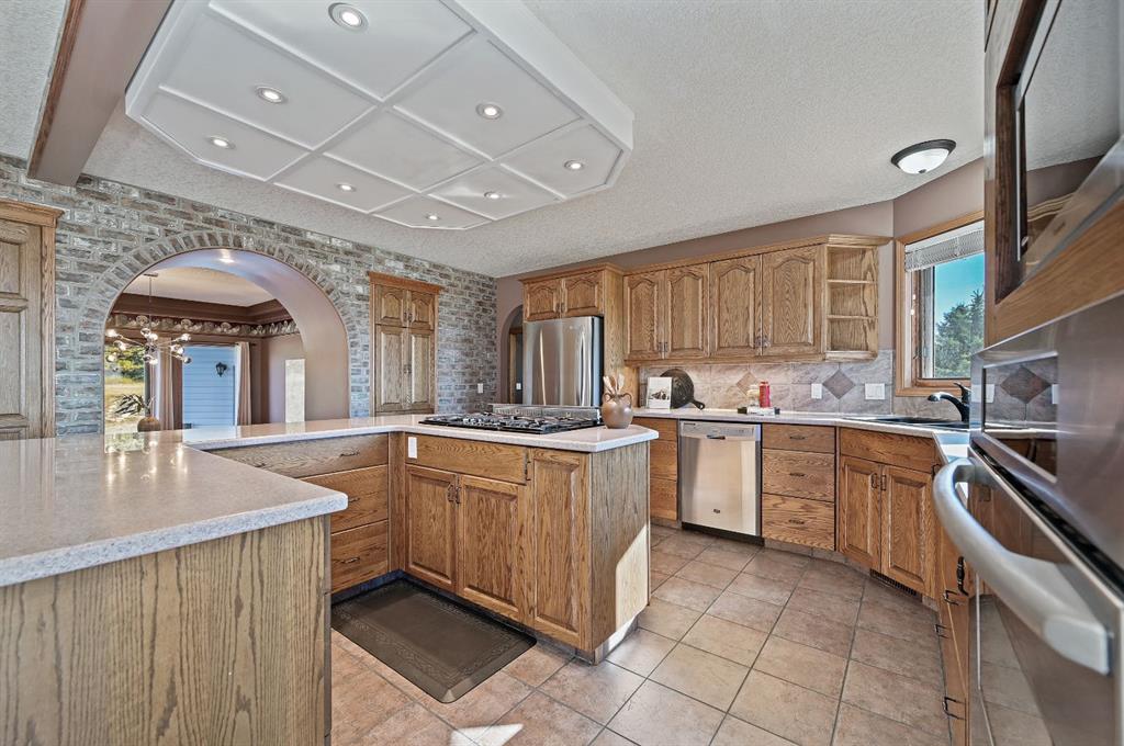 The moment you arrive, you’re greeted by a grand circular drive and timeless exterior that sets the tone for what lies inside. A barrel-vaulted entryway leads to an inviting open-concept layout, blending warm wood tones, soaring ceilings, and picture windows that frame the surrounding countryside.