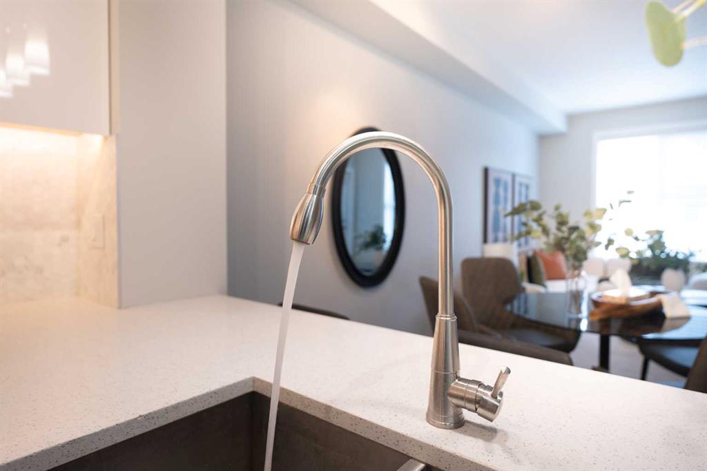 BUILDER SALE! Looking for upgrades in a spec unit? This might be the one. Welcome to the Axess building, located in the heart of the historic Currie Barracks community! This beautifully upgraded 1-bedroom unit features soaring 9-foot ceilings. Step inside to find luxury vinyl plank flooring and an abundance of natural light streaming through oversized windows. The stylish kitchen showcases a modern blend of crisp white and dark cabinetry, upgraded stainless steel appliances including a gas stove, quartz countertops, and a designer tile backsplash. An open counter connects seamlessly to the dining area, perfect for entertaining. The spacious living room leads to a top-floor balcony with a gas BBQ line and unobstructed southern views—the perfect place to relax and enjoy breathtaking sunsets. The generously sized primary bedroom features a walk-through closet with direct access to the elegant 4-piece bathroom, complete with tile flooring, quartz countertops, and a soaker tub. Just off the kitchen is a versatile nook—ideal for extra storage or a small home office setup. Additional highlights include in-suite laundry, underground parking with a car wash, and a private storage locker located directly in front of your parking stall. All this in a prime location—steps from Mount Royal University, walking paths, parks, shopping, and with easy access via Crowchild Trail to Marda Loop and downtown Calgary. A truly exceptional opportunity to own in one of Calgary’s most desirable communities.