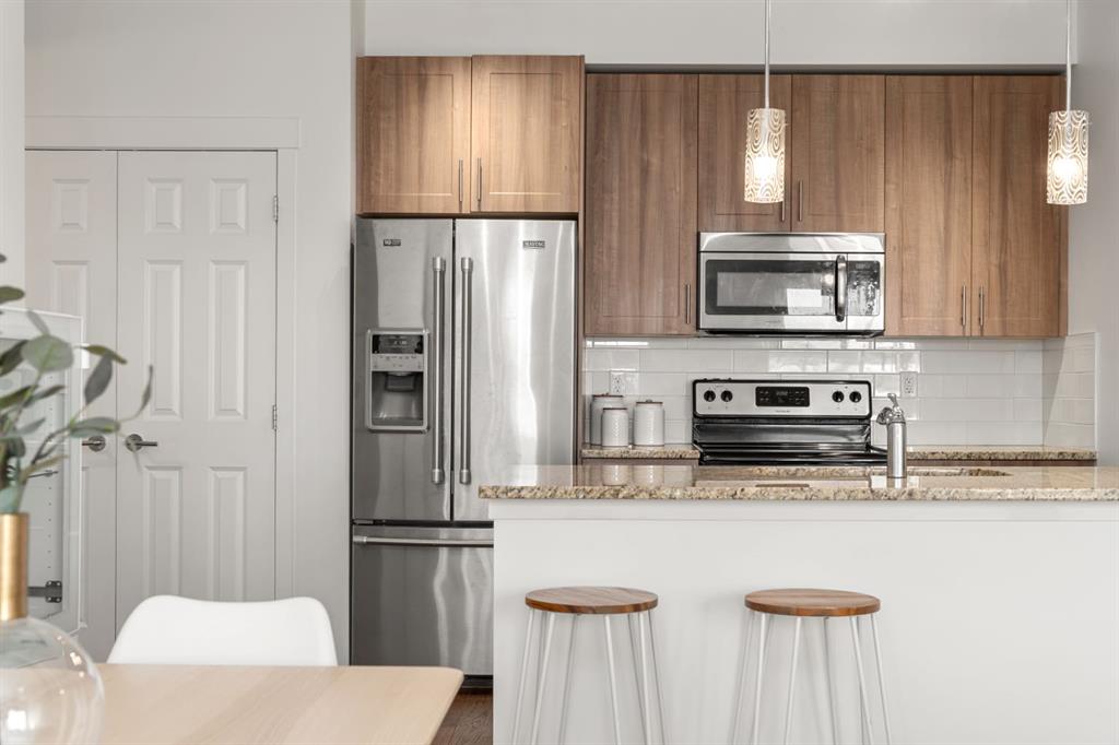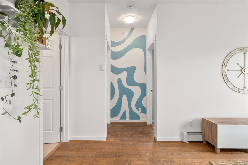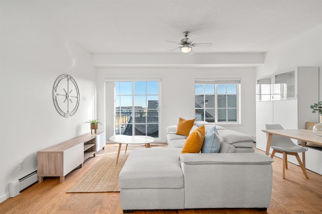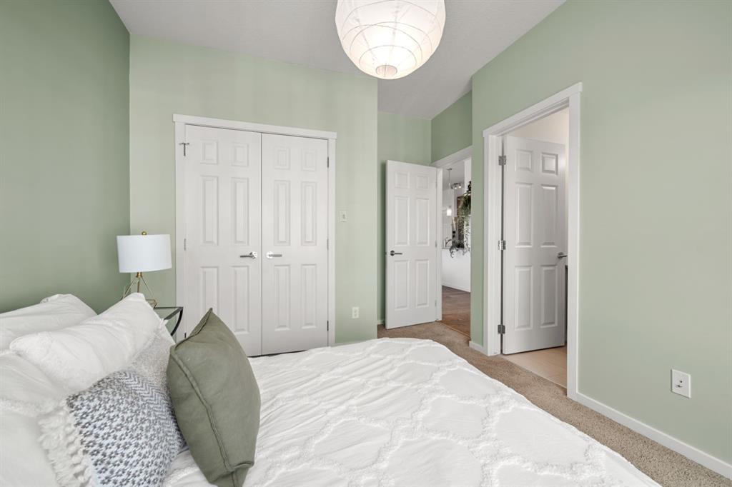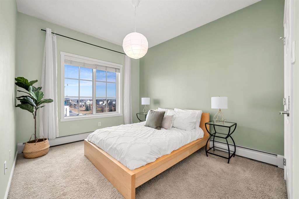 Welcome Home to Copperfield Park III! Step into this beautifully maintained and perfectly located TOP FLOOR condo, backing directly onto a serene grassy area and just steps from scenic walking paths, ponds, and parks in the heart of family-friendly Copperfield. Loads of amenity close by including schools and shops. Offering nearly 800 sq. ft. of thoughtfully designed living space, this open-concept unit impresses with a spacious kitchen featuring granite countertops, abundant cabinetry, and upgraded stainless-steel appliances. This layout includes two bright bedrooms—each with large windows—and two full bathrooms, ideal for homeowners or investors alike. You’ll appreciate the high-end security features, including a comprehensive camera system throughout the complex. Enjoy the convenience of two titled underground parking stalls—a rare find and tremendous value—along with a large underground storage locker. Better than new, this upgraded home showcases beautiful hardwood floors, modern lighting fixtures, and walk-in closets for ample storage. A custom-built patio sectional and all fixed shelving are also included, adding even more value and charm. Don’t miss your chance to own this stylish and move-in-ready home in a fantastic location. Contact your favourite REALTOR® today for a private showing!