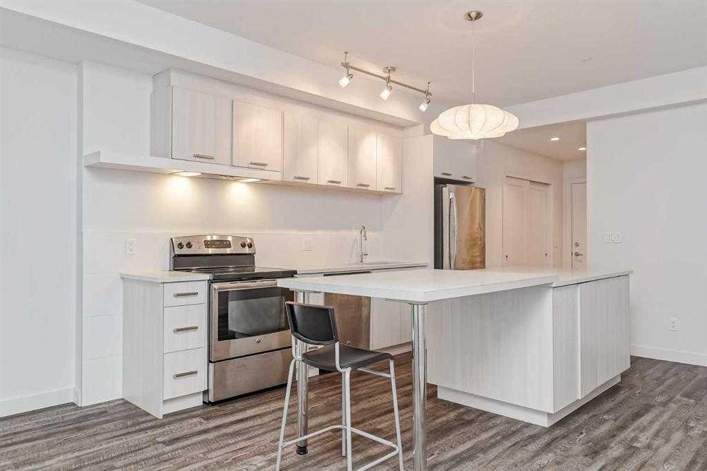 Beautiful, bright, just like new condo in a prime Location with a south-facing balcony, perfect for enjoying sunny mornings. With an open concept, you'll be captivated by the modern interior. The kitchen is beautiful with lots of quality cabinets. Pristine white quartz countertops, with timeless elegance. The stainless steel appliance package ensures that your culinary adventures are met with modern conveniences. The primary bedroom is your own personal sanctuary, complete with a walk-in closet and the ensuite bathroom featuring an upgraded shower and sink. the Nice den / flex room is an added bonus. Natural light floods the interior through the large windows and French door leading to your personal balcony, creating a warm and inviting atmosphere throughout the day. Luxurious, durable flooring runs through the unit with large porcelain floor tiles in the bathroom. The nine-foot ceilings add a sense of spaciousness and airiness to the condo. The balcony is equipped with a gas line, making it ideal for outdoor cooking and entertaining. You’ll find a full laundry room conveniently located within the unit, providing practicality and ease to your daily routine. Enjoy the freedom to share your home with furry friends, as pets are allowed in this building, but must be approved by condo board. The building provides secure and heated underground parking, ensuring your vehicle is always protected and accessible. The unit also comes with a separate assigned storage locker. This condo is surrounded by playgrounds and parks. Explore the trendiest local restaurants and shops, just steps away from your doorstep. With in-floor heating throughout the condo. Don't miss out on the opportunity to call this luxurious condo your own. Experience the perfect blend of style, convenience, in an ideal location. Come and see for yourself schedule a viewing today!