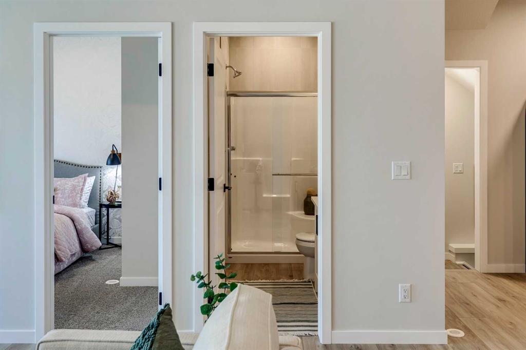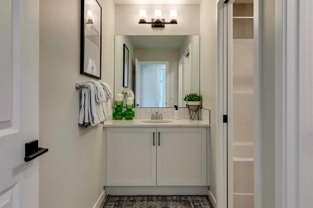 Westcreek Homes presents the SOHO plan backing on to a green space and playground with a separate side entry, double attached garage and well appointed upgrades throughout! From your attached double garage and front foyer enter into vinyl plank flooring and 9' ceiling height. A family style mudroom with bench and coat closet as well as a front coat closet add to the convenience of the plan. The open design main floor blends the kitchen, dining and lifestyle room into 1 outstanding plan with a full appliance package including a gas stove top, built in oven, center island, walk in pantry and chimney hood fan. Overlooking the dining area and back living room with views of the park and a perfectly placed main floor flex room/office. Access to your rear deck off the garden door and with a side staircase to the lower level with a private side entry. The upper plan has room for all, 2 front bedrooms, a generous laundry room, 4 piece guest bath and central bonus room. The primary bedroom is situate to the back of the home to enjoy your park views and comes with a walk in closet and 5 piece private ensuite bath including his and her sinks a deep soaker tub, water closet and tiled full size shower. Take advantage of a lower level with 9' ceilings which offers the layout for a legal suite or just extra space for the entire family to enjoy with a high efficient furnace and tankless hot water on demand. The plan, location, size and options to suit any of today's modern families!
