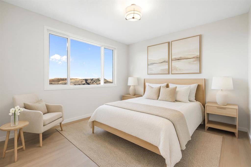 **OPEN HOUSE CANCELLED** Welcome to 147 Marmot Grove NW, where refined design meets relaxed luxury in the heart of Glacier Ridge - one of NW Calgary’s most sought-after new communities. This home isn’t just a place to live; it’s a lifestyle. Think quiet morning coffee overlooking the environmental reserve, golden hour dinners on the patio with no neighbours behind, and the ease of single-level living that still offers space for family, guests, and entertaining. From the moment you step inside, light pours through soaring vaulted ceilings that crown the open-concept main floor. The living, kitchen, and dining areas flow together effortlessly, creating a sense of airiness and connection. Every detail feels elevated, from the 8' interior doors to the luxury vinyl plank flooring that stretches seamlessly throughout. At the center of it all is a chef’s kitchen designed for both beauty and purpose. Two-toned cabinetry in taupe and dark grey, Delta champagne bronze hardware, and a custom hood fan set a rich, modern tone. The oversized island is not only a gathering place - it’s brilliantly functional, with banks of deep drawers for organized, easy-access storage. A farmhouse sink, appliance garage, and six-burner gas range complete the culinary experience, while direct access to the rear patio invites effortless indoor-outdoor living. The living room feels warm yet sophisticated, anchored by a fully tiled electric fireplace - a natural focal point for cozy nights in or weekend gatherings. Just off the main area, the primary suite is designed as a true retreat - it’s connected to everything you need: a walk-in closet, laundry area, and a spa-inspired ensuite that feels straight out of a boutique hotel. Enjoy a custom tiled shower with a rainfall head and wand, a soaker tub, quartz countertops, and walls wrapped in elegant tile. Every finish, every fixture whispers “relax, you’re home.” Downstairs, the fully developed basement extends your living space beautifully with three additional bedrooms, a full bath, and a versatile rec room - perfect for a home gym, movie nights, or a cozy guest retreat. Outside, the stone and Hardie Board exterior offers timeless curb appeal, while the great-sized yard and peaceful backdrop of the environmental reserve create the kind of privacy and natural connection that’s rare in the city. The community of Glacier Ridge offers rolling landscapes, wide open skies, and thoughtfully planned streetscapes. You’ll find parks, walking paths, playgrounds, and new amenities taking shape all around you - just minutes from established conveniences, yet surrounded by quiet and space. Every inch of this sprawling bungalow is a testament to thoughtful design and modern living. It’s a home that celebrates both beauty and function - perfect for those who want to live stylishly, comfortably, and connected to nature. Experience the feeling of home, elevated. Schedule your private showing today.