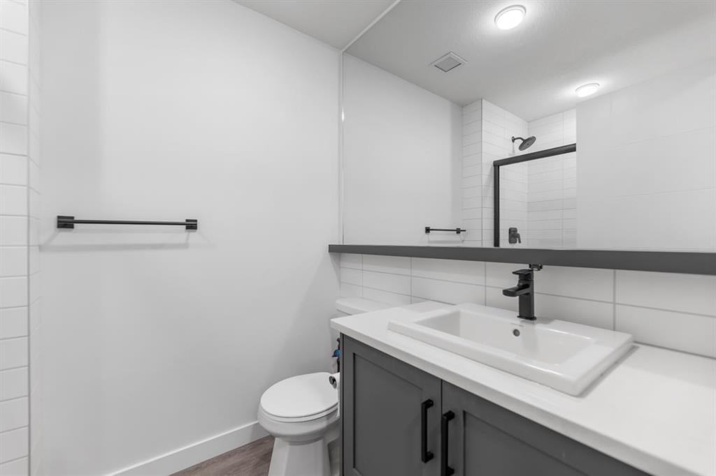 This bright and modern 1 bedroom 1 bathroom condo is located in the heart of Calgary’s University District. It features an open layout with 9’ ceilings, vinyl plank flooring, quartz countertops, stainless steel appliances and a spacious in-suite laundry area. The kitchen has beautiful shaker-style cabinets with soft-close drawers while the bathroom offers a glass-enclosed shower with a built-in bench. The bedroom includes a walk-in closet and the private balcony is perfect for relaxing or BBQs with a gas line already hooked up. You’ll also find great extra touches like AC rough-in, roller shades and sleek LED lighting throughout.
