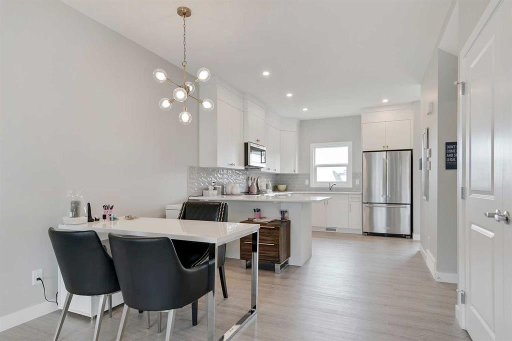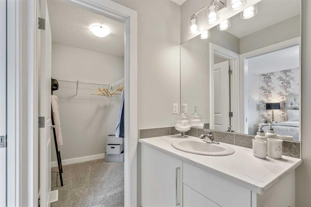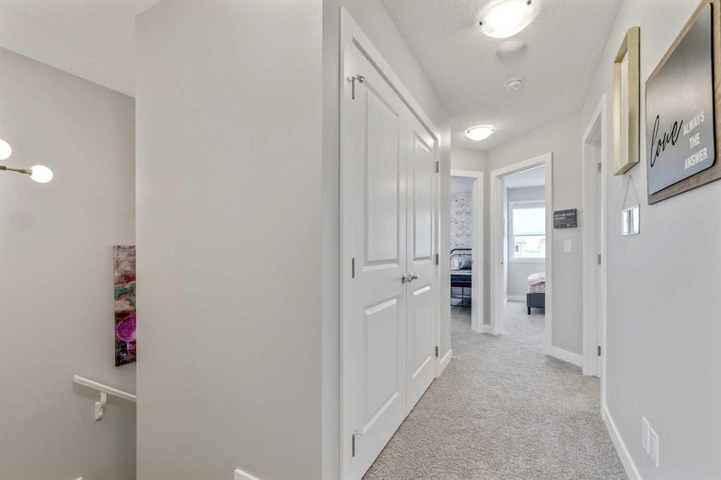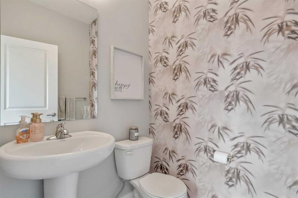 Westcreek Home presents the Cascade plan offering a perfect blend of style and functionality, starting with a charming front porch with stone accent exterior. Step inside to a spacious front lifestyle room featuring 9’ knockdown ceilings and durable vinyl plank flooring. The center dining area flows seamlessly into a beautifully appointed rear kitchen, complete with quartz countertops, extended height white cabinets with upper soffit fillers, a striking chimney hood fan, and a tiled backsplash. A gas line rough-in to the stove adds convenience for cooking enthusiasts. Additional features include a rear entry with a closet, a 2-piece bath, and a dual-door pantry closet for ample storage. Upstairs, plush carpeting enhances comfort in the two front bedrooms and hallway, while the rear primary suite boasts vinyl plank flooring in the 4-piece bath and a generous walk-in closet. The bath is elegantly finished with a quartz storage vanity and a tub surround accented with decorative tile. A dual-door upper laundry room with built-in upper storage cabinets adds practicality. Another 4-piece bath with vinyl plank flooring, quartz vanity and tiled tub surround serves the upper level. A linen closet completes the upper floor. The basement offers a separate side entry and is ready for your personal touch, featuring 9’ ceilings and rough-ins for a bath and kitchen, providing excellent potential for future development. Experience this amazing plan, community with unique options to make this your smart investment!