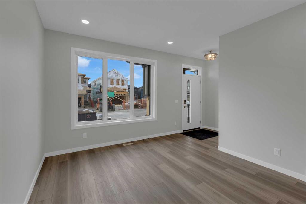 Move into your BRAND NEW home for Christmas! This gorgeous half duplex—the Wren by Excel Homes—is loaded w/upgrades, high end finishings & ready for quick possession. Perfectly situated in Airdries COBBLESTONE CREEK, residents can find sanctuary in Cobblestone's network of parks, paths & recreational amenities - with direct access & pathway connections to amazing Chinook Winds Regional Park & across the street from Airdries new rec Centre - tennis, pickleball & basketball courts - so many options to say active & socialize! Nearby schools have your covered from K to 9. The WREN showcases a contemporary open-concept main floor, ideal for entertaining and everyday living. Poured concrete walk ways & front porch will provide for lasting curb appeal. The chef-inspired kitchen, located at the rear of the home, overlooks the backyard and provides gorgeous, neutral, ceiling height cabinetry, drawers, and a full pantry. Upstairs, a striking black metal railing leads to a cozy central bonus room with vaulted ceilings, separating two generous secondary bedrooms from the private primary suite, which features a full ensuite and a spacious walk-in closet. All bathrooms have stone countertops! The upper floor also includes a convenient laundry & and family bath. This home includes a SIDE ENTRANCE to the basement, offers 9' ceilings, is drywalled and the electrical is also done. The utilities are nicely tucked at the rear of the home for easy development & more useable floor space. This home comes with an 18.8 x 22 CONCRETE parking pad, one tree & sod to front yard. There is also a gas line to the bbq at the rear. With over 35 years of experience, more than 15,000 homes built, and 75 awards for design and industry excellence, Excel Homes continues to deliver quality, innovation, and peace of mind—making the Wren a truly smart choice for your next move.