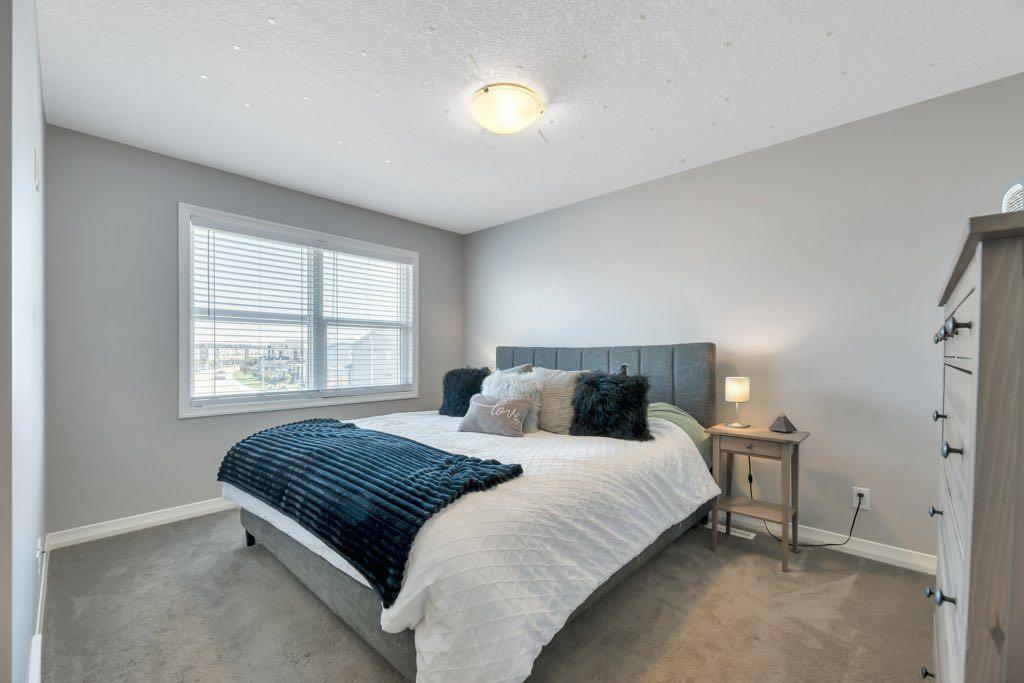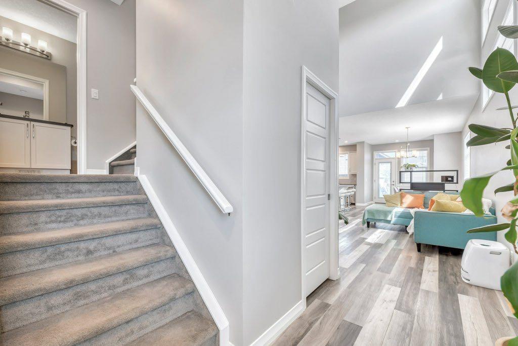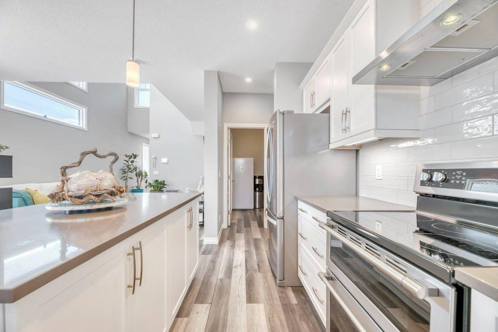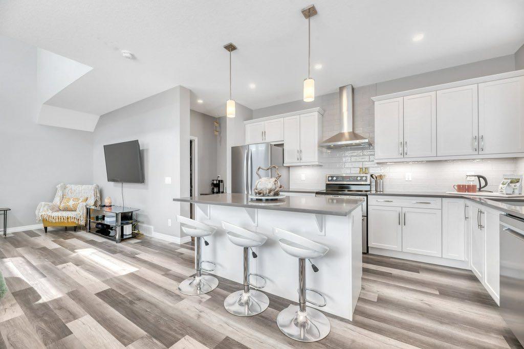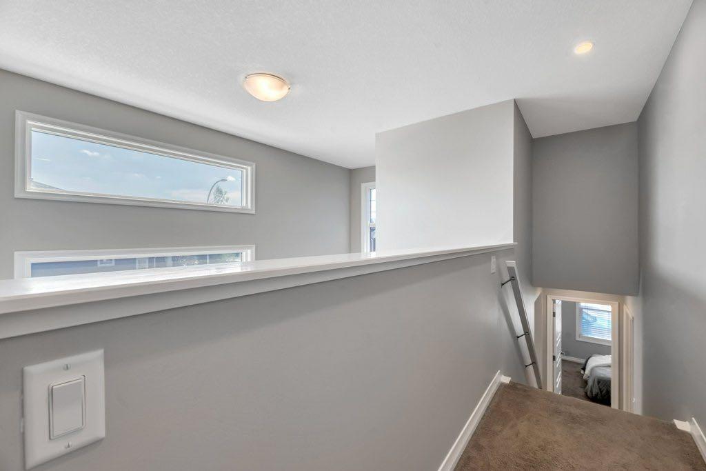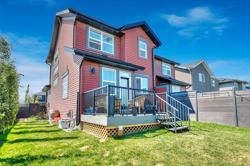 Check out this beautiful house with an amazing layout! Fall in love with your new home in the vibrant, family oriented community of Evanston. This unique side by side home offers modern stylish finishes and a super functional layout on a prime corner lot. Striking red siding, contemporary architecture, well maintained landscaping and the coolest weather resistant fence made from bamboo make this property stand out from the crowd. You’ll feel at home right away as you step into the bright and sunny living space with its soaring vaulted ceilings and spacious open concept layout with tons of windows. You’ll love the well planned kitchen with popular white cabinetry, gleaming stainless steel appliances, quartz counters and a centre island with seating for friends and family to gather. A cute little coffee or appliance station leads to your oversized pantry / storage room. The kitchen is also open to the dining area and a back door leads to your deck for easy access for grilling and outdoor dining. 2 more closets on this level provide ample storage for outer wear and other items. The second level of this home has one bedroom plus a full bath creating a perfect private space for a child or teen’s room, guest room or maybe a home office. The spacious owner’s retreat is on the top level. The 5 pc ensuite includes his and hers sinks, a good sized soaker tub and a separate shower plus there is a generous walk in closet. You’ll love the convenience of upstairs laundry and the vaulted open hallway takes advantage of the many windows on the main level creating a bright and open feel. You can expand your living space as needed in the clean, dry and unspoiled basement. Big windows give you the opportunity to add additional bedrooms if desired. The backyard has a nice deck and plenty of grassy area for kids and pets to play plus there is room to add a garage with back alley access. You are going to love living in Evanston. This modern suburban community offers an abundance of green spaces, great local schools and access to all urban amenities and major roadways. Don’t miss your chance to call this one home. New siding October 2025