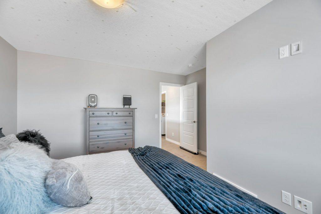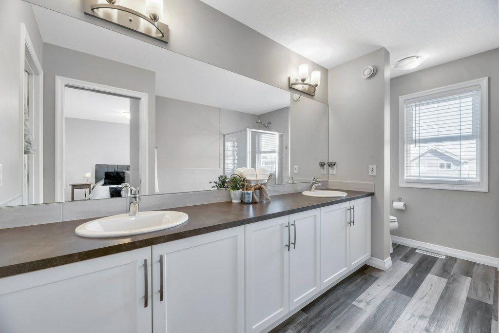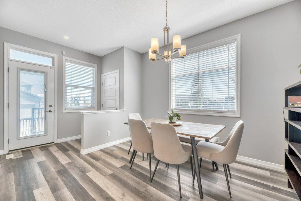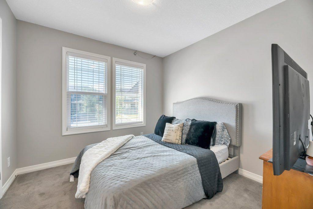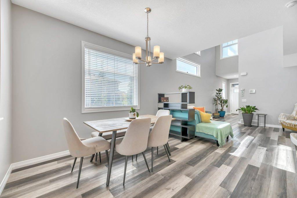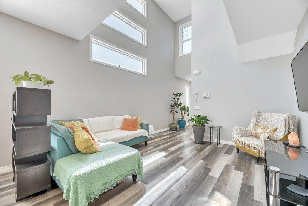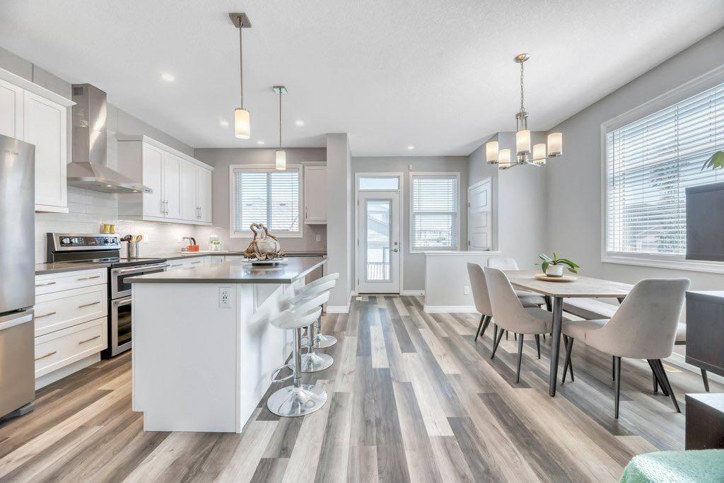 Check out this beautiful house with an amazing layout! Fall in love with your new home in the vibrant, family oriented community of Evanston. This unique side by side home offers modern stylish finishes and a super functional layout on a prime corner lot. Striking red siding, contemporary architecture, well maintained landscaping and the coolest weather resistant fence made from bamboo make this property stand out from the crowd. You’ll feel at home right away as you step into the bright and sunny living space with its soaring vaulted ceilings and spacious open concept layout with tons of windows. You’ll love the well planned kitchen with popular white cabinetry, gleaming stainless steel appliances, quartz counters and a centre island with seating for friends and family to gather. A cute little coffee or appliance station leads to your oversized pantry / storage room. The kitchen is also open to the dining area and a back door leads to your deck for easy access for grilling and outdoor dining. 2 more closets on this level provide ample storage for outer wear and other items. The second level of this home has one bedroom plus a full bath creating a perfect private space for a child or teen’s room, guest room or maybe a home office. The spacious owner’s retreat is on the top level. The 5 pc ensuite includes his and hers sinks, a good sized soaker tub and a separate shower plus there is a generous walk in closet. You’ll love the convenience of upstairs laundry and the vaulted open hallway takes advantage of the many windows on the main level creating a bright and open feel. You can expand your living space as needed in the clean, dry and unspoiled basement. Big windows give you the opportunity to add additional bedrooms if desired. The backyard has a nice deck and plenty of grassy area for kids and pets to play plus there is room to add a garage with back alley access. You are going to love living in Evanston. This modern suburban community offers an abundance of green spaces, great local schools and access to all urban amenities and major roadways. Don’t miss your chance to call this one home. New siding October 2025