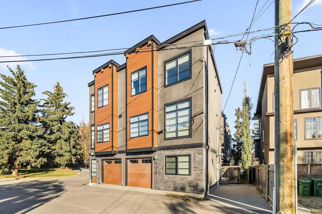 **OPEN HOUSE: Sunday, December 7th from 12:00 - 2:00 PM** Step into timeless sophistication in the heart of Parkhill, one of Calgary’s most coveted inner-city communities. This executive three-storey end unit blends modern design, refined finishes, and an unbeatable location steps from Stanley Park. Enter via the private front door or directly through the attached garage. The ground level opens to a bright, versatile flex space - ideal for a polished home office, fitness area, lounge or extra storage. A full paint job and thoughtful details set an elevated tone from the moment you arrive. Sunlight pours across the open-concept main living floor, offering hardwood floors and lofty ceiling heights. The gourmet kitchen features ceiling-height cabinetry - including dedicated pantry cabinets for small-appliance storage and overstock, quartz countertops, a sleek metallic designer backsplash, and stainless steel appliances with a gas range. Walk out to a private balcony for morning coffee, or cozy alfresco dining at night. Seamless flow to the dining and living areas creates an effortless setting for both intimate evenings and spirited entertaining. Ascend to the third level to discover two spacious and elevated primary suites, each with an opulent, spa-inspired ensuite bath and a custom walk-in closet for boutique-level organization; a convenient laundry area with upgraded washer and dryer sits between the bedrooms for everyday ease. This freshly, professionally painted residence also offers central air conditioning to keep you cool during Calgary’s hot summers, a single attached garage, and low-maintenance, lock-and-leave living - perfect for winter getaways. Outside your door, Stanley Park awaits - with pools, tennis courts, a baseball diamond, miles of Elbow River pathways for cycling, running, or peaceful walks. You can launch a kayak or enjoy riverbank views within minutes of leaving your front door - an inner-city rarity. Or just enjoy an expansive green space, while microbreweries, cafés, and restaurants are an easy stroll away. Being only a 5-minute drive to downtown Calgary, you have instant access to the city’s business core, the Beltline, and lively 4th Street or 17th Avenue districts for shopping, dining, and nightlife. This is Parkhill living at its most refined: location, design, and lifestyle, all beautifully aligned.