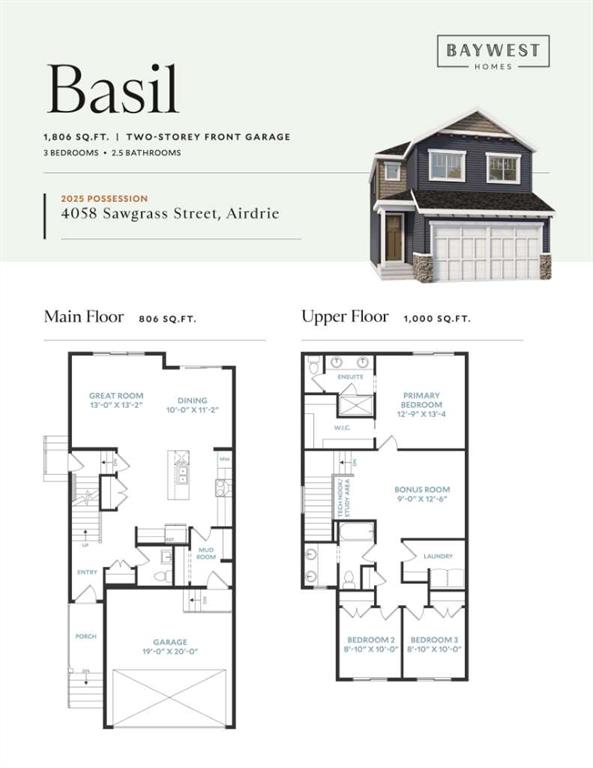 Meet THE BASIL—a beautifully designed 1,872 SQ.FT. home featuring 3 bedrooms, 2.5 bathrooms, and an East-facing backyard on a spacious lot, complete with a sunshine basement. With an estimated January 2026 possession, you’ll have plenty of time to plan your next chapter.