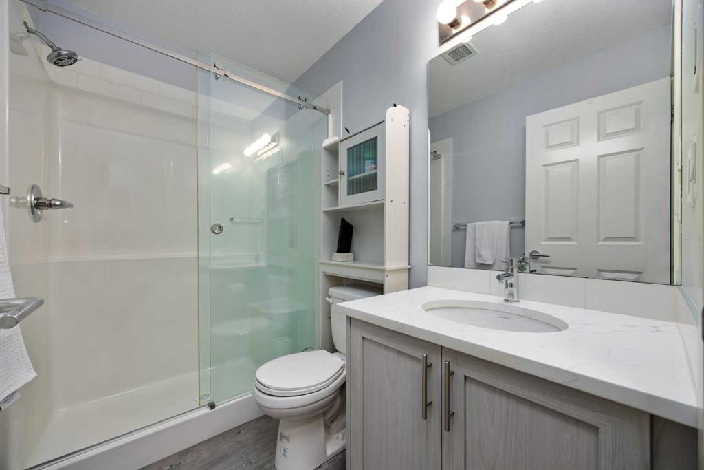 This beautifully upgraded main-floor condo blends luxury, comfort, and convenience in one of Calgary’s most sought-after communities. Featuring two spacious bedrooms and two full bathrooms, this home is designed with thoughtful details throughout — from luxury vinyl plank flooring and designer lighting on dimmers to a custom oversized quartz island and upgraded cabinetry. The kitchen is finished with a full premium appliance package, while the second bathroom features an elegant glass shower upgrade. Built in 2021, every element was carefully selected for modern elegance and everyday functionality. Enjoy year-round comfort with air conditioning, and peace of mind with exceptionally low condo fees in a well-managed building. Step outside to your massive 150+ sq. ft. patio — the largest in the complex — complete with a rare gated private entrance offering direct access to the parking lot. It’s perfect for morning coffee, summer gatherings, or pet owners who want convenience and privacy. Additional perks include a titled underground parking stall, secure storage locker, and an unbeatable location close to parks, pathways, shopping, and transit. Modern, low-maintenance living has never looked so good.