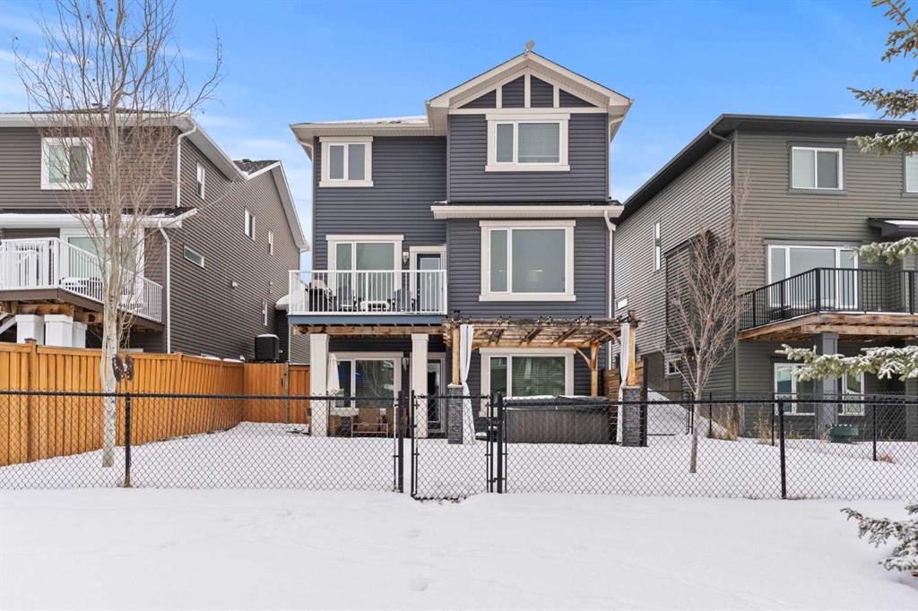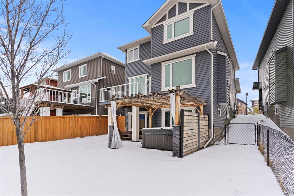 Welcome to this stunning, impeccably maintained home in one of Airdrie’s most sought-after upscale communities! Offering over 3,200 square feet of beautifully finished living space (just over 2,200 sq ft above grade plus 1000+ sq ft in the fully developed walkout basement), this 4-bedroom, 3.5-bathroom home is bright, sunny, and move-in ready. Backing directly onto a serene green space with walking paths and parks nearby, this home combines privacy, functionality, and luxury. The main floor features a spacious den perfect for a home office, a large front foyer, and a welcoming two-storey entrance with upgraded open railings that make a grand first impression. The open-concept living room includes a gas fireplace, and the generous dining area leads to the west-facing backyard—perfect for sunsets and evening entertaining. The gourmet kitchen is a chef’s dream with granite countertops, a gas cooktop with wall oven, pot and pan drawers, and a walk-through pantry connecting to the oversized mudroom. Upstairs, you’ll find a large bonus room, upper-level laundry, and three generous bedrooms, including the luxurious primary suite with vaulted ceilings, a walk-in closet, and a spa-inspired ensuite featuring dual vanities, a soaker tub, an oversized shower, and a private water closet. The fully finished walkout basement includes a kitchenette, a spacious fourth bedroom, full bathroom, and plenty of storage. Step out to the beautifully landscaped backyard complete with a hot tub, mature trees, and room to relax or entertain. Additional features include central air conditioning, tons of storage throughout, and a fantastic location close to schools (including a K-12 Francophone school), shopping, pathways, and parks. This immaculate, turn-key home offers space, style, and an unbeatable location—ready for its new family!
