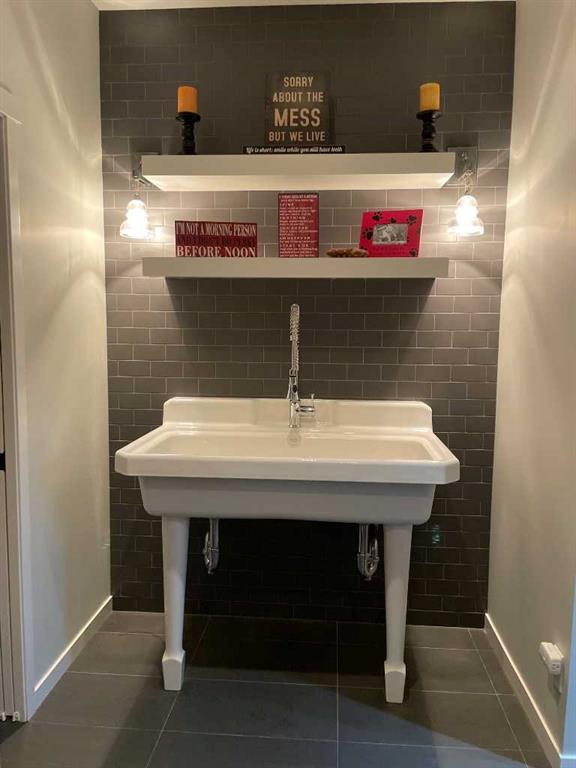 The kitchen is a true showstopper, featuring dark-stained wood cabinetry, quartz countertops, and a classic subway tile backsplash that extends to the ceiling, with a lowered bulkhead for a sleek, finished look. Additional upgrades include under-cabinet and over-sink lighting with dedicated wall switches, a built-in water filtration system, and new stainless steel appliances—including a microwave, faucet, and recently replaced dishwasher.