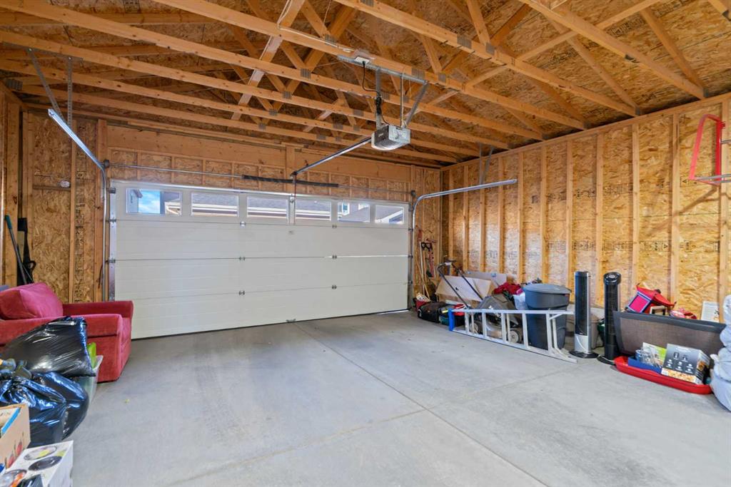 Oversized paved back lane leading to the 24' x 24' double garage with two rafter tire racks for extra storage