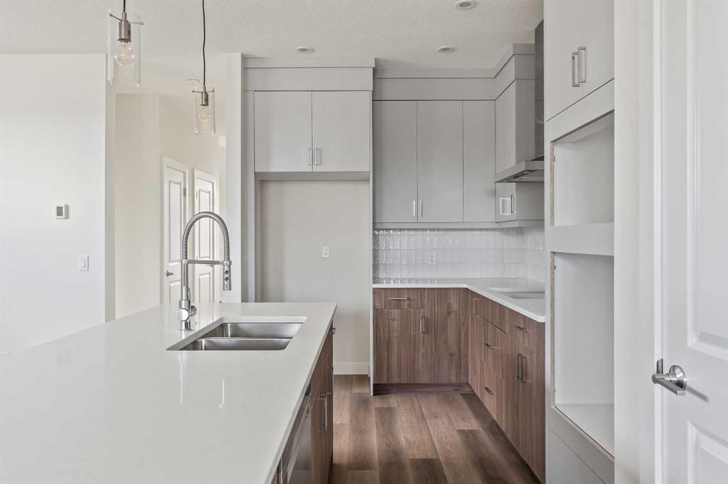 Welcome to The Oxford by Brookfield Residential - a beautifully designed, fully detached home in the vibrant master-planned community of Livingston that includes a double detached garage! Perfectly blending contemporary style, functional living, and timeless design, this home offers 4 bedrooms and 3.5 bathrooms above grade, spread over nearly 2,000 sq. ft. of meticulously crafted space plus a full basement with a private side entrance for incredible flexibility or future suite potential (subject to local municipal approval). With over 3,000 sq. ft. of total potential living space, this home provides the perfect balance of comfort, space, and future opportunity. The open-concept main floor is bright and airy, highlighted by oversized windows and a seamless connection between the kitchen, dining area, and great room, making it perfect for entertaining or everyday family life. The kitchen is a true centerpiece, showcasing stainless steel appliances including a gas cooktop and chimney hood fan, full-height cabinetry, quartz countertops, and a large pantry for added storage. The expansive great room at the front of the home spans the entire width, filling the space with natural light and a welcoming energy. A main-level bedroom with a full ensuite makes this the perfect layout for those wanting multi-generational living. On the upper level, a central bonus room separates the luxurious primary suite from the secondary bedrooms, creating both privacy and flow. The primary bedroom includes a large walk-in closet and a 4-piece ensuite with dual sinks and a walk-in shower. Two additional bedrooms, a full bathroom, and a conveniently located laundry room complete the upper level. The basement, with its private side entrance, awaits your vision - perfect for a future legal suite (subject to city approval), a gym, media room, or additional living area. With ample space for a large living room, bedroom, and bathroom, the possibilities are endless. Outside allows for flexible yard space and already includes a 20'x22' detached double garage that will keep your vehicle and valuables safe all year long! Located in Livingston, one of Calgary’s most sought-after new communities featuring parks, playgrounds, the Livingston Hub, and quick access to Stoney Trail and major amenities, this is a home that truly has it all. Backed by Brookfield Residential’s comprehensive builder warranty and the Alberta New Home Warranty Program, you can purchase with confidence knowing your investment is secure.