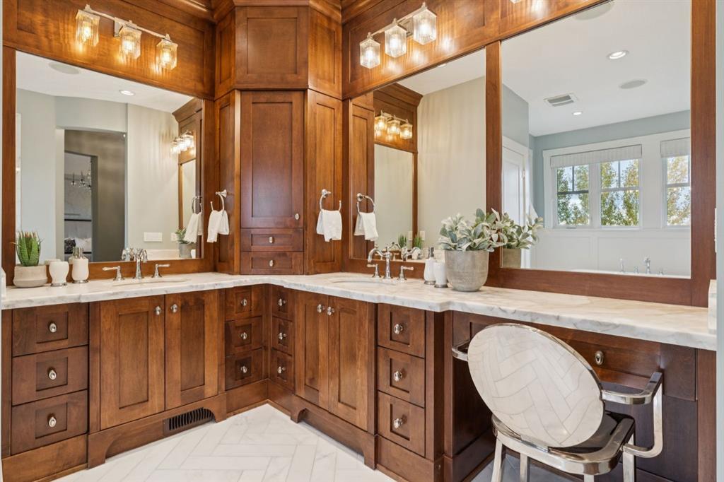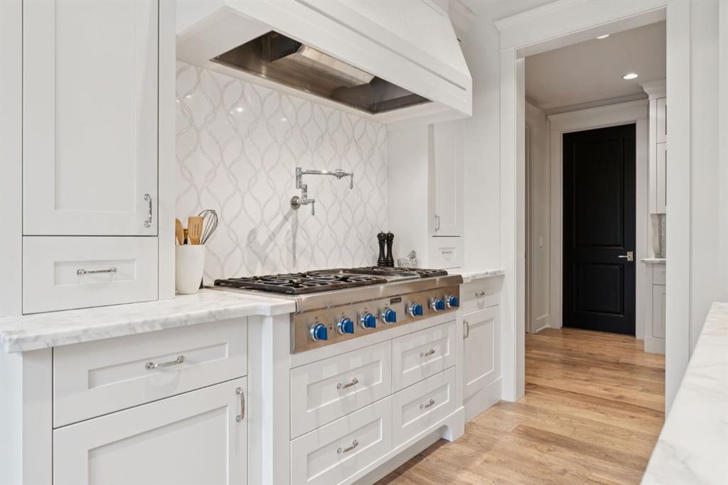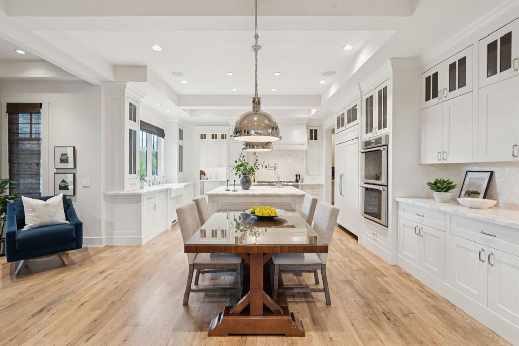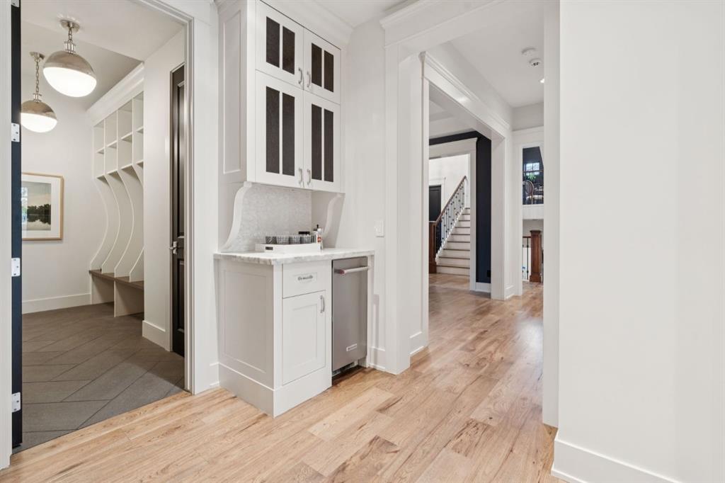 With nearly 5,800 sq.ft. of exquisitely finished living space, this residence offers 6 total bedrooms (four up) and five bathrooms, blending timeless design with modern sophistication. Inside, rich site finished hardwood floors, custom millwork and built-ins throughout, and multiple fireplaces create an atmosphere of warmth and refinement. The chef’s kitchen impresses with Thermador and SubZero appliances, custom cabinetry, and open, light-filled spaces that flow seamlessly into the home’s elegant living areas.