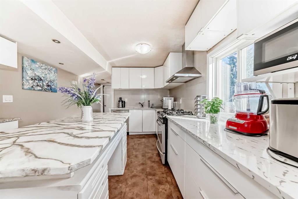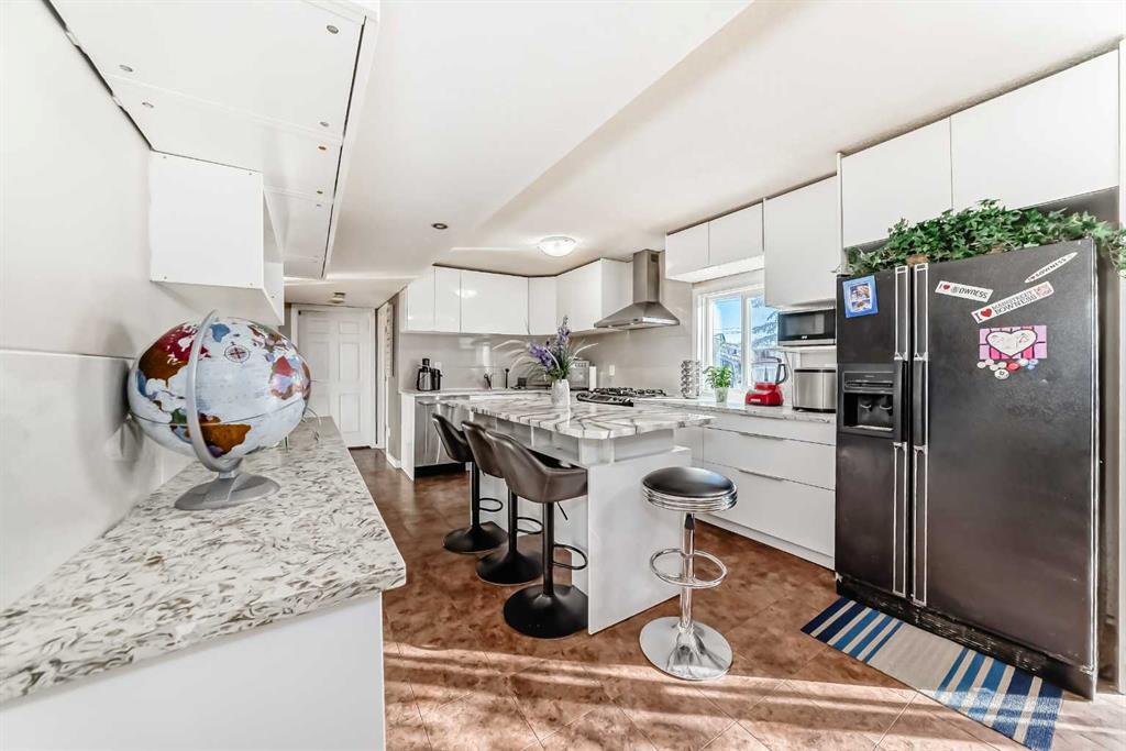 NEW PRICE! BACHELOR SUITE/4-BED/3 BATH/6200 SQFT R-CG LOT/OVERSIZED DOUBLE GARAGE/WEST BOWNESS LOCATION. Welcome to this TWO-STOREY DETACHED home, which was extensively constructed in 1990, expanding upon the original 1953 bungalow. Nestled on a quiet street in a friendly neighborhood, it offers 2,150+ total sqft of functional, spacious living in highly west Bowness. This home is designed for family life, featuring a bright, functional layout, a HUGE YARD, and an OVERSIZED 24' X 24' DOUBLE GARAGE. Enjoy a beautifully UPDATED KITCHEN (2018) featuring GRANITE countertops with backsplash tiles, stainless steel appliances, a gas range, and new cabinetry. The bright, spacious main floor with full UPDATES done in 2015 including full bathroom, convenient laundry facilities, and new flooring throughout. The generous primary bedroom on the upper level is a true retreat, complete w/ a dedicated separate staircase & massive walk-in closet. The functional basement includes a SEPERATE ENTRANCE BACHELOR SUITE (built 2015) with its own KITCHENETTE, full 4-piece bath & an egress window. Perfect for a private space for extended family or RENTAL INCOME ($1,200) to ease the mortgage. Unwind on the covered front porch or host summer BBQs on the large rear deck. The huge, private, fenced backyard is an oasis featuring fruit trees & a playground area for kids. Enjoy an UNBEATABLE LOCATION on a QUIET street w/ stunning VIEWS of Canada Olympic Park (COP)/Winsport from the front porch & primary bedroom. You are just steps away from nature w/ BOWNESS PARK, Baker Park & the river, & have incredible access to amenities: Within walking distance to elementary & high schools, transit, & local shops. Only minutes to the new Calgary Farmers Market, Foothills/Childrens Hospitals, U of C, & major routes (Stoney Trail, TransCanada Highway) for a quick escape to the mountains. A superb opportunity to own a spacious, updated home in a prime location, offering both immediate financial flexibility & long-term security w/ its valuable oversized lot. Book your showing today!