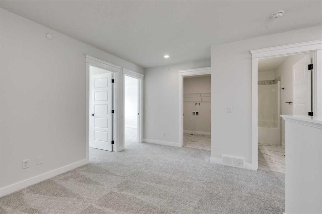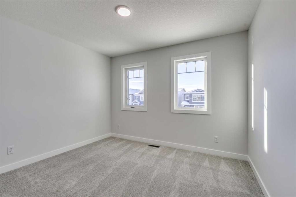 Welcome to your new home in one of Calgary's newest and most accessible communities - Hotchkiss. This beautifully designed 2040 SF home with a double car front attached garage and rear deck offers the perfect balance of comfort, style, and convenience—a short 5 minute drive to Seton amenities and quick access to Stoney and Deerfoot Trail. Step inside to find an open-concept floor plan filled with natural light, high ceilings, and modern finishes throughout. The spacious main floor features a large flex room suitable for a home office, and flows seamlessly into a gourmet kitchen complete with upgraded Samsung stainless steel appliances, quartz countertops, and a generous island—perfect for entertaining or casual meals. Upstairs, the primary bedroom is your personal retreat with large windows, a WIC and ensuite. Two extra bedrooms and a spacious bonus room provide ample space for entertaining, as well as comfortable accommodations for family and guests.