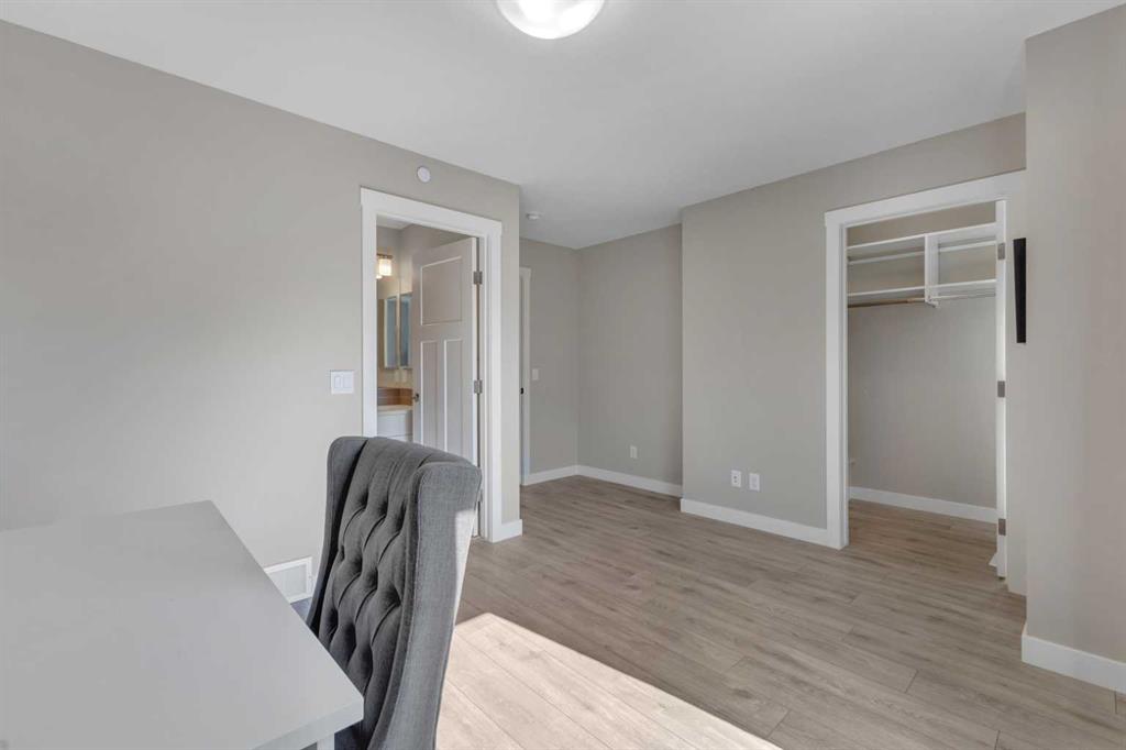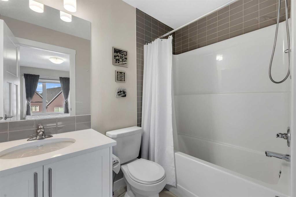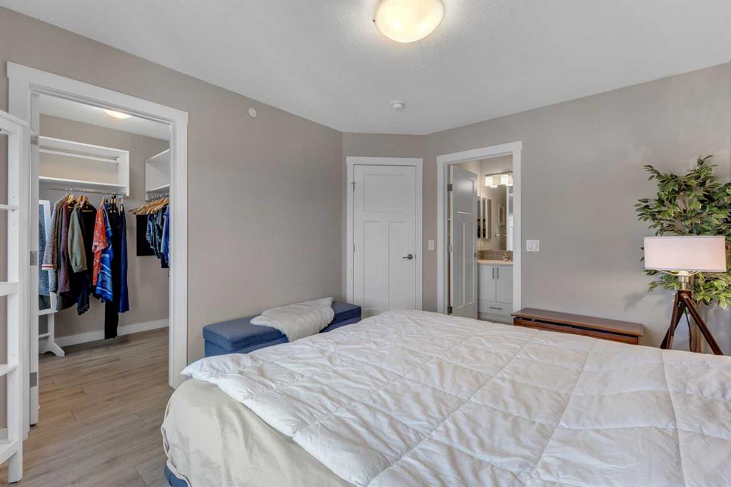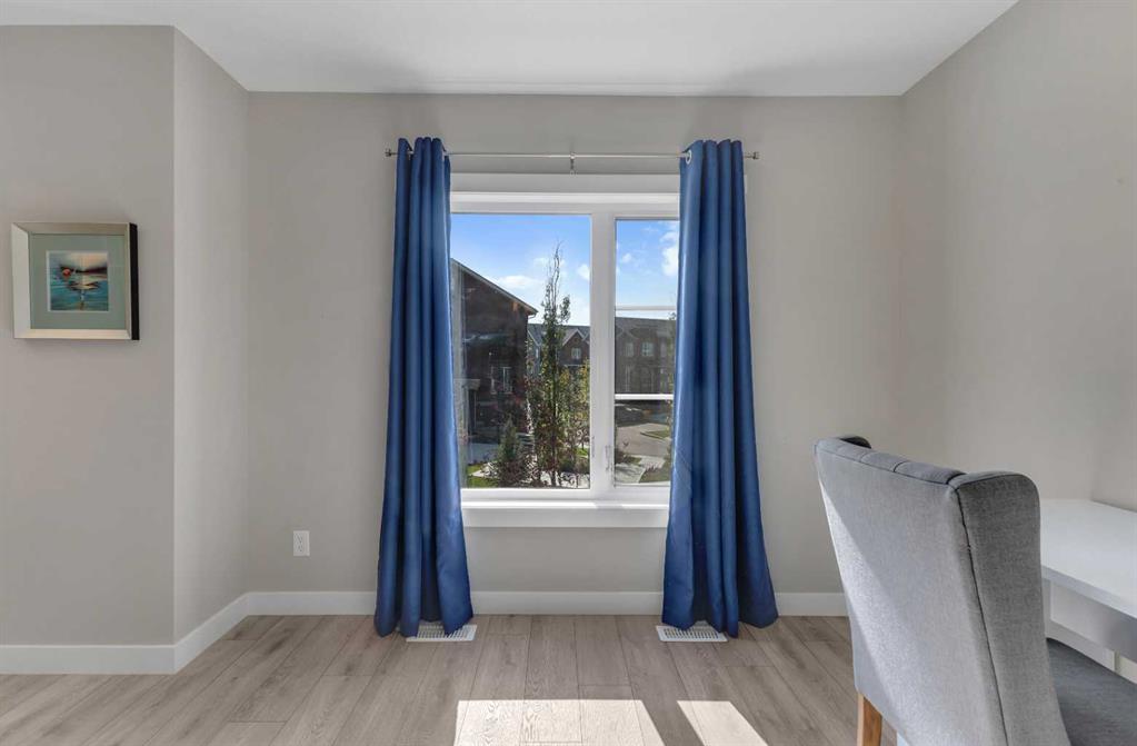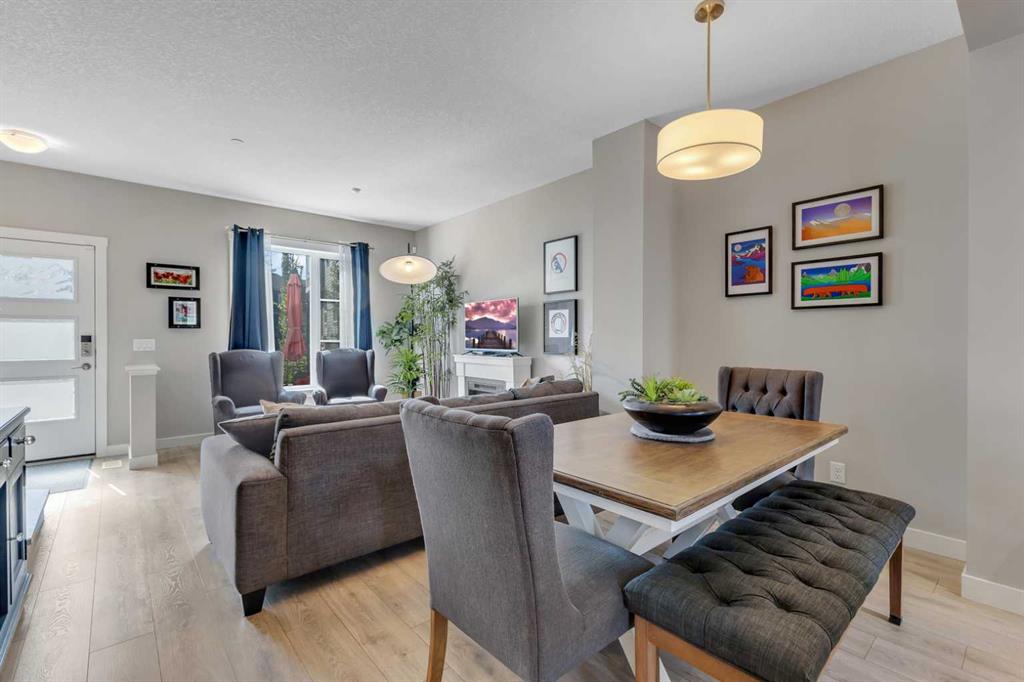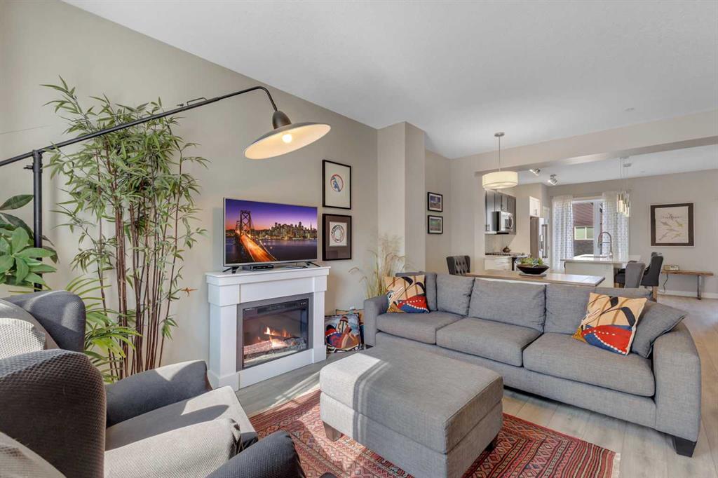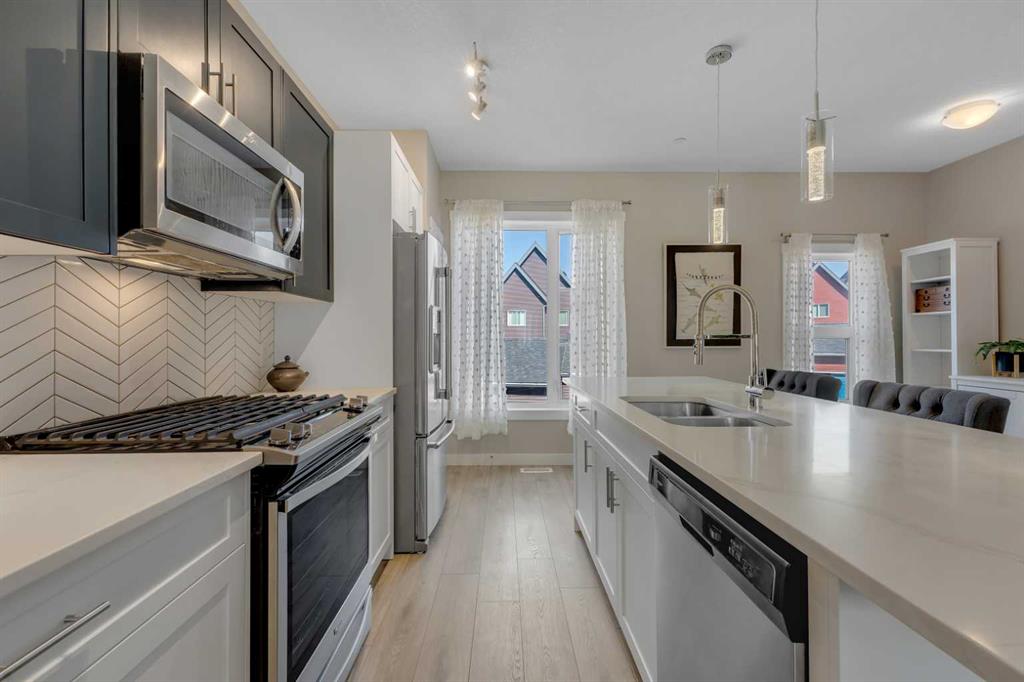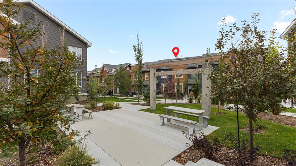 Situated in the innovative and vibrant community of Livingston, this beautifully designed, open-concept home combines modern style with everyday comfort. Nestled in one of the most peaceful corners of the complex and overlooking a serene courtyard, this home offers its own private front-yard retreat. With 1249 sq. ft. of developed living space, high-quality finishes, and thoughtful upgrades throughout, this home is sure to impress. Bright and airy, the interior showcases oversized windows, 9-foot ceilings, and luxury vinyl plank flooring that extends gracefully through every room. The stylish kitchen is masterfully designed for efficiency and entertaining. Featuring premium upgraded quartz countertops, elegant herringbone tile backsplash, shaker-style two tone cabinets, stainless steel appliances including a gas stove, and a sprawling island. The kitchen flows seamlessly into a refined dining area and living room, centered around a cozy fireplace, ideal for entertaining and relaxation. A versatile flex space, perfect for a home office, and powder room complete the main floor. Upstairs, the second floor continues to impress with dual primary bedrooms, each with their own ensuite and walk-in closet. Enjoy the practicality of the upper-floor laundry room paired with extra storage space, keeping your home organized and efficient. Step outside to a spacious private patio complete with a cozy fire table, perfect for relaxing evenings or morning coffee. The double attached garage provides plenty of room for parking and storage, while the unfinished lower level awaits your personal touch. Just steps from your front door, the LIVINGSTON HUB offers endless recreation and fun for families. Enjoy the tennis courts, skate park, ice rink, playground, splash park, gymnasium, and a variety of community programming—everything you need to stay active and entertained.
