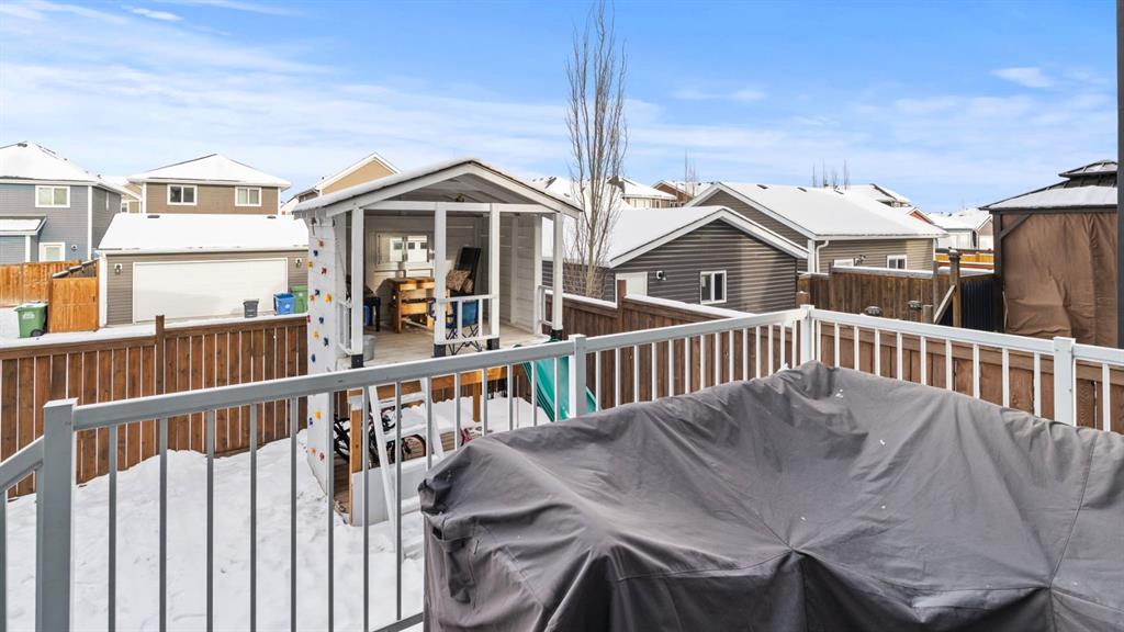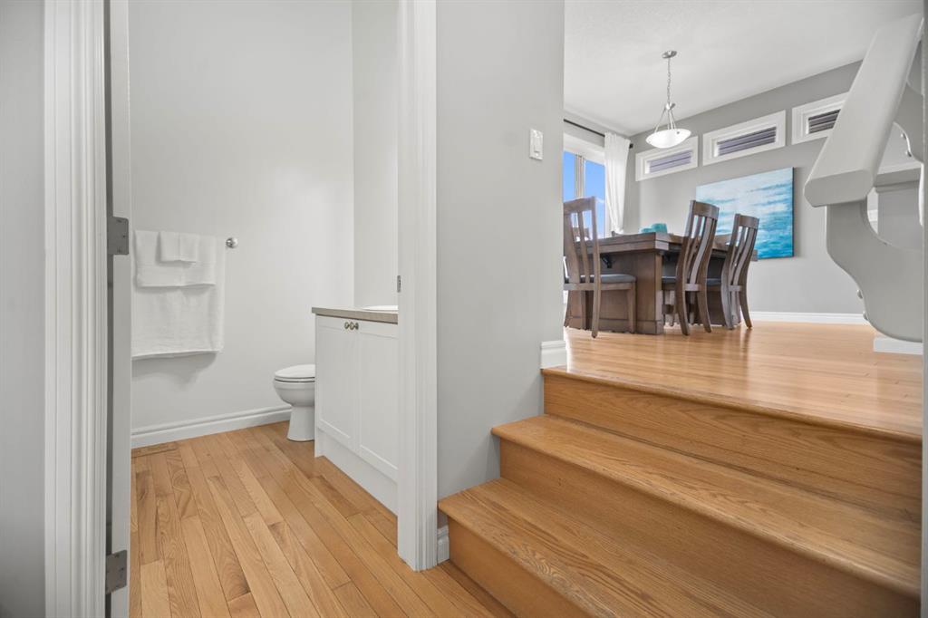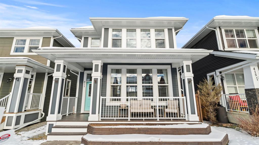**OPEN HOUSE SUNDAY DEC 7 FROM 12:00-2:00** Welcome to 411 River Heights Crescent, a beautifully appointed home where timeless design meets modern sustainability. Thoughtfully designed with high ceilings, expansive windows, and a naturally flowing floor plan, this residence offers a perfect blend of light, space, and comfort. The main level features a bright and open living area anchored by a striking stone-surround gas fireplace and framed by large south-facing windows. The elegant kitchen is a true centerpiece showcasing timeless white cabinetry, a farmhouse sink, quartz countertops, hidden microwave, and a large uninterrupted island ideal for baking, entertaining, or family meals. Hardwood floating shelves add warmth and charm, while a 3rd rack dishwasher and spacious pantry enhance everyday functionality. Upstairs, the primary suite is a tranquil retreat with oversized windows, a large walk-in closet, and a spa-inspired ensuite with large vanity with generous storage, and a relaxing corner tub. Two additional bedrooms and a full bathroom with a large vanity complete the upper level. The fully developed basement extends the living space with a large, versatile recreation area perfect for hobbies, fitness, or family movie nights along with an additional bedroom and tons of storage space. This home stands apart with its professionally installed 7.36 kW Net Zero Solar System, designed for peak efficiency and long-term savings - generating over 40,900 kWh of energy in its first 5 years. Over its lifetime it will offset 151,000 lbs of coal; this system delivers near net-zero electricity costs averaging under $100/month for a family of six. Environmentally, it’s equivalent to planting 3,600+ trees or removing a vehicle from the road each year. Outside, the beautifully landscaped yard features raised garden beds, established perennials, and both north- and south-facing outdoor living spaces, a sunny front veranda and a private back deck off the dining room that has double sliding doors to extend the space naturally for summer gatherings. It has a great size yard with a playhouse for the kids to enjoy. Located in a quiet, low-traffic section of River Heights Crescent, this home offers quick access to parks, playgrounds, schools, and walking paths, with easy routes to downtown Cochrane and Calgary. It’s a rare opportunity to enjoy timeless craftsmanship, a smart layout, and modern energy independence all in one remarkable home.