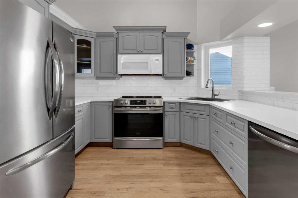 Set in a quiet, family-friendly cul-de-sac and surrounded by natural pathways, amenities, and top-tier schooling, this exceptionally maintained and fully developed 4-level split is the kind of property families dream about—and rarely find. With a sprawling pie-shaped lot, mature trees, meaningful upgrades, and a layout designed for both comfort and connection, this home delivers the space, flexibility, and lifestyle that today’s families truly need. Major exterior improvements were completed in 2025, including new siding, eavestroughs, shingles, and west-facing windows—offering long-term value, improved efficiency, and modern curb appeal. The oversized double front attached garage easily fits a full-size pickup, a highly sought-after feature that enhances daily convenience. The space offers electric heat and copious storage shelves. Inside, the main level is defined by impressive vaulted ceilings that flood the home with natural light and create an immediate sense of openness. The spacious living and dining areas are perfectly configured for family gatherings, celebrations, and everyday comfort. From the dining room, step directly out onto the rear deck—ideal for morning coffee (served up from your coffee bar), barbecues, or supervising playtime in the backyard. The kitchen provides excellent storage, generous prep space, and the functionality required for busy family life. Upstairs, the vaulted primary suite offers a peaceful retreat complete with en suite, while additional bedrooms and bathrooms ensure space and privacy for every member of the household. The third level delivers a warm, inviting family room anchored by built-in bookshelves—an ideal setting for movie nights, reading nooks, or displaying collectibles. A walkout leads to the beautiful treed yard, where mature landscaping creates a private outdoor oasis. The included hot tub elevates the backyard experience even further, offering a relaxing escape year-round. The fully developed fourth level extends the home’s versatility. It’s plumbed for a wet bar—perfect for entertaining—or can easily accommodate a sink for a home salon setup if desired. This is also where you will find plush carpets and fresh paint along with a 4th bedroom and full bathroom. Convenient for short term or long term guests, exchange students or generational occupants. Whether you envision a rec room, home gym, creative workspace, or a business-friendly configuration, this level adapts to your needs with ease. Call your Realtor® for a private viewing soon!