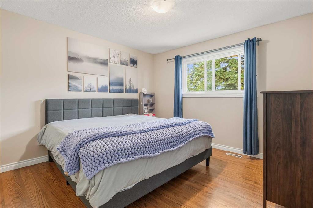 The kitchen is generous in size with open shelving, ideal for cooking or entertaining. Downstairs offers two additional bedrooms and a spacious bonus room with cozy cabin-style vibes — perfect for a family room, games area, or home theatre. The lower level also enjoys bright windows and a separate entrance accessed from the backyard.