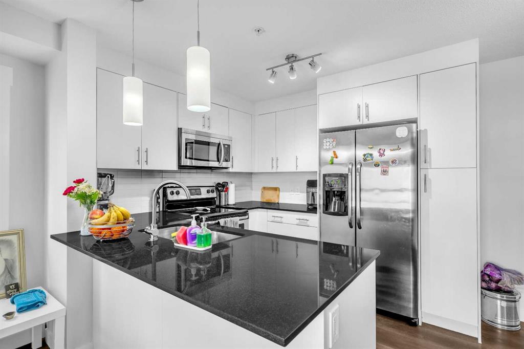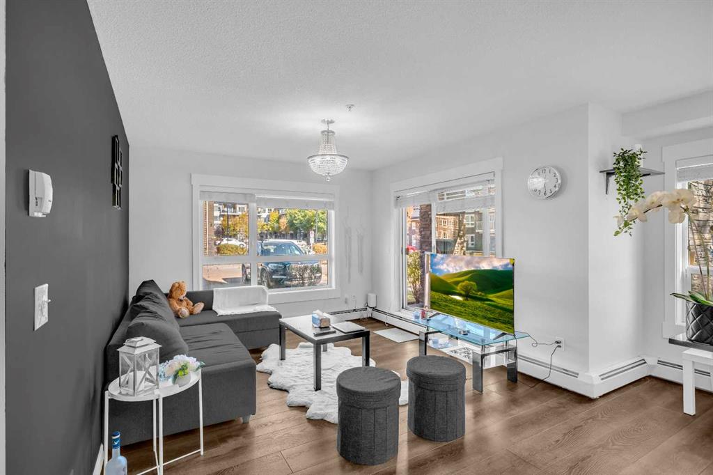Nestled in the well-established community of Skyview Ranch, this spacious ground-level corner condo offers comfort, convenience, and contemporary living. Surrounded by parks, playgrounds, and schools, it’s an excellent choice for families, first-time buyers, or anyone looking for a peaceful place to call home. Step into a secure building with key fob and buzzer access and be welcomed by a spacious foyer with a convenient closet for storage. The open-concept layout includes an upgraded kitchen with stainless steel appliances, granite countertops, and full-height cabinetry. The dining area flows effortlessly into the bright and inviting living room, filled with natural light from large windows and a sliding glass door that opens to your private patio — perfect for relaxing or entertaining. The two bedrooms are thoughtfully placed on opposite sides of the unit for added privacy. The primary bedroom mirrored closets and a 4-piece ensuite bathroom. The second bedroom is generously sized and conveniently located next to the main 4-piece bathroom featuring a tub/shower combo. Enjoy the practicality of in-suite laundry discreetly tucked behind closed doors, along with modern light fixtures that add a stylish touch throughout the main living space.This unit also comes with one titled underground heated parking stall, keeping your vehicle protected year-round. With easy access to Stoney Trail, Deerfoot Trail, the airport, and all nearby amenities, this condo offers an ideal blend of modern comfort and everyday convenience. Book your showing today and see why this Skyview Ranch condo is a fantastic place to call home!