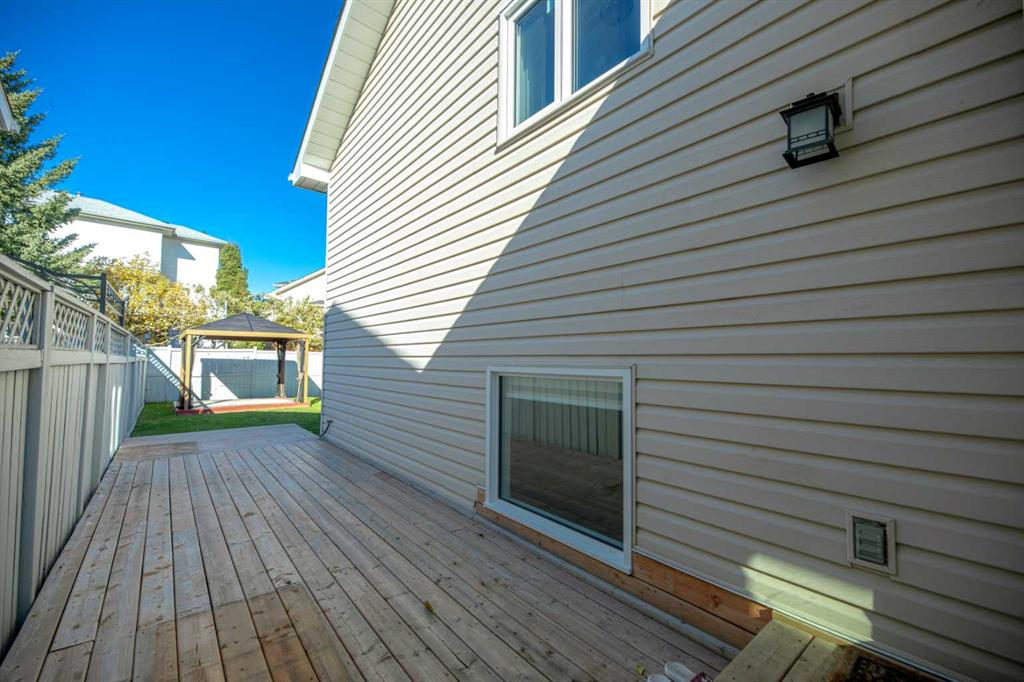 The kitchen offers plenty of cupboard space, a functional layout, and easy access to the back deck—perfect for family gatherings and summer barbecues.