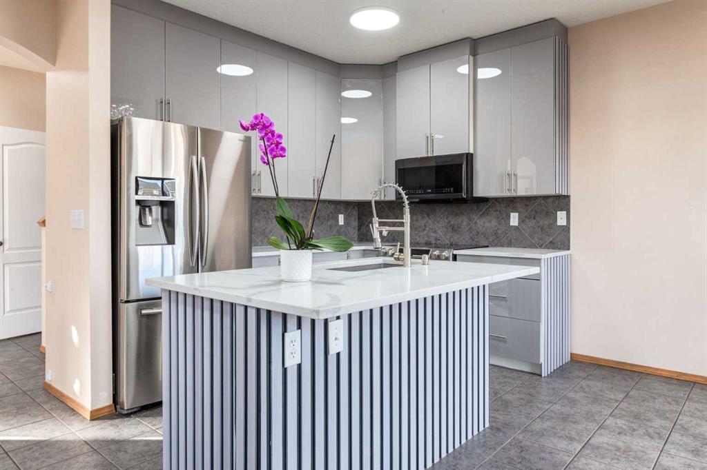 Welcome to 756 Luxstone Landing SW, a beautifully upgraded property in one of Airdrie’s most sought after areas. Step into a bright and open main floor featuring nine foot ceilings, a brand new kitchen with modern appliances, new cabinets throughout the home, and large windows that fill the space with natural light. The layout is perfect for both entertaining and everyday living, offering a warm and inviting flow from kitchen to living area.
