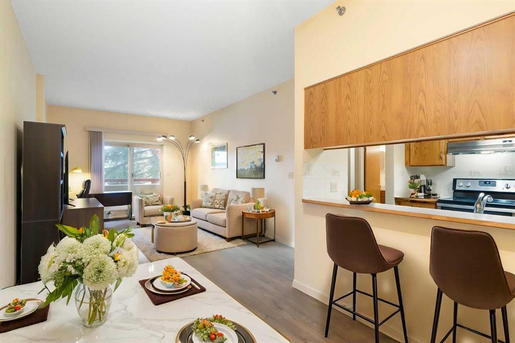 This well-maintained first-floor condo, featuring high ceilings, offers over 900 sq. ft. of living space in a concrete building. With easy access to the unit, it presents an ideal opportunity for investors seeking strong rental potential or for students looking to own their own property in a high-demand area. Located just a 5 minute walk to the University of Calgary, and close to the C-Train station, Foothills Hospital, Alberta Children’s Hospital, SAIT, Market Mall, University District, Brentwood Mall, and McMahon Stadium. Downtown Calgary is only a 10 minute drive away, and public transit is right outside the building—making this a top choice for students, medical professionals, and commuters. The unit has been updated with newer flooring and fresh paint. It features a galley-style kitchen with plenty of cabinet and counter space, stainless steel appliances, and a spacious living room that opens to a private balcony with views of McMahon Stadium and Foothills Athletic Park. With two large bedrooms, each with walk-in closets, and an in-suite laundry room with extra storage, this unit is both practical and desirable for tenants. It also includes a heated underground parking stall (#29). Condo fees cover water, heat, sewer, garbage, underground parking, professional management, exterior maintenance, insurance, and reserve fund contributions. Don’t miss the opportunity to make it yours, book your private showing today!