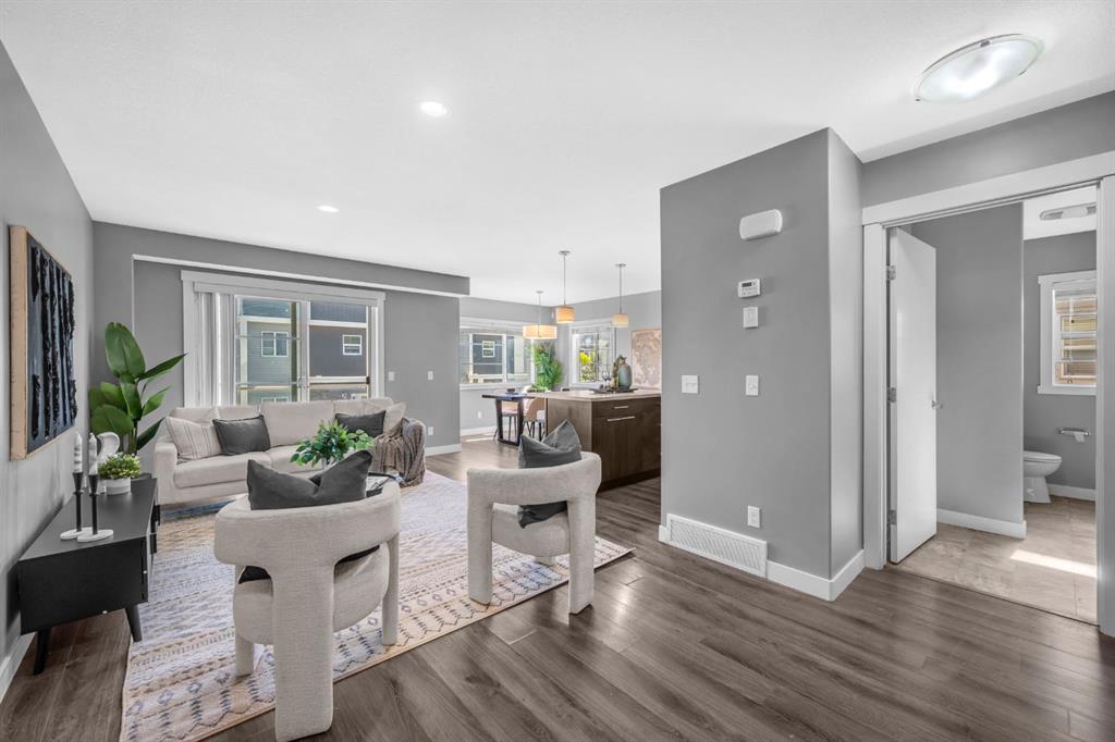 Welcome to this beautifully maintained CORNER unit offering exceptional space and convenience in Redstone. Featuring 4 spacious bedrooms and 2.5 bathrooms, this home is perfect for families or anyone seeking extra room to grow. The bright, open layout is FRESHLY PAINTED and PROFESSIONALLY CLEANED, providing a true move-in ready experience. The main floor consists of a large foyer with access to the garage and bedroom. The second floor features a bright, open layout living area featuring a beautiful kitchen with upgraded stainless steel appliances and island. The open layout of the kitchen, sizeable centre island, dining room and living room make it perfect for entertaining. The huge patio area easily fits a small patio set to sit and relax with a natural gas line hook up ready for your bbq. The upper floor features a huge master bedroom with a VAULTED CEILINGS, walk-in closet and attached ensuite. There are 2 more spacious bedrooms and a full bathroom on the top floor. Enjoy the convenience of an attached single garage plus full driveway, giving you ample parking and storage. With its corner location, this home also benefits from extra windows and natural light throughout. Located in a very quiet location across a park in a family oriented community of Redstone! This home is close to all amenities like bus stop, stores, mall, airport, bus stop, groceries and easy access to Stoney Trail and Deerfoot. Steps away from a new shopping plaza opening on Redstone Blvd!