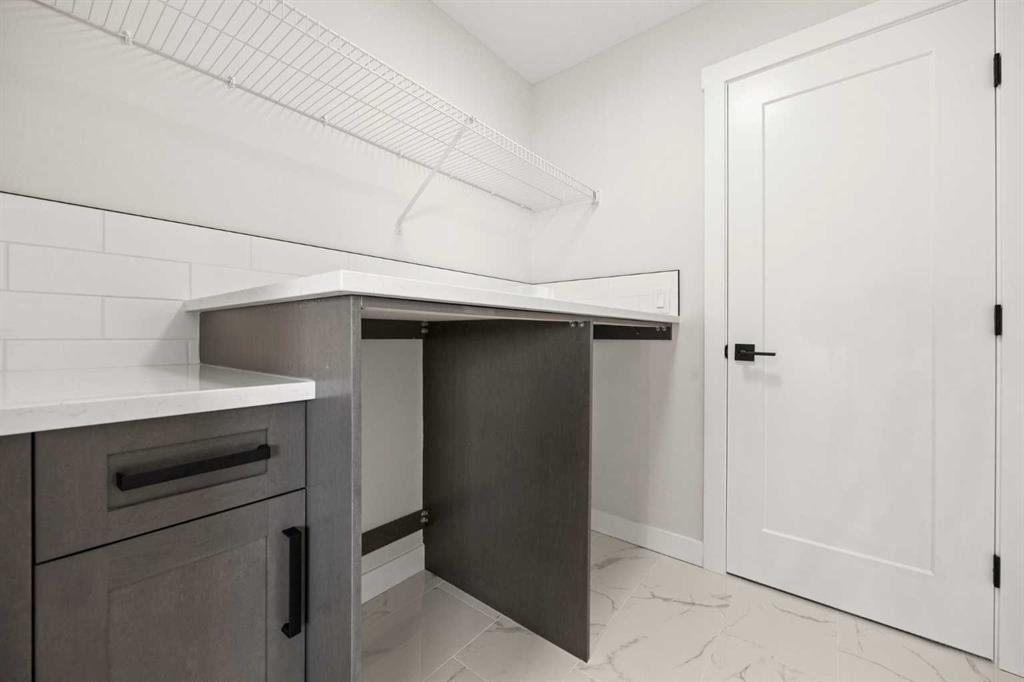From the moment you step inside, you’re greeted by a luxury open-to-below entrance featuring a custom shiplap coat hook and built-in bench, making a stylish and practical first impression. The main floor features 9' ceilings with 8' doors throughout, a full bedroom with an adjoining full bathroom, and a walkthrough mudroom and pantry that connects seamlessly to the open living space. The heart of the home is the kitchen, with painted cabinets to the ceiling, quartz countertops, a large island with breakfast bar seating, and stainless steel appliances. Oversized triple-pane windows fill the dining and living rooms with natural light, while the open layout makes this the perfect home for family gatherings or entertaining.