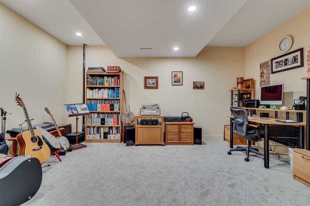 Downstairs, the fully developed lower level offers a large family room with a second gas fireplace, an oversized second bedroom with walk-in closet, a full bathroom, and a NEWLY ADDED SOUNDPROOFED FLEX ROOM —ideal as a MUSIC STUDIO, home office, gym, or creative space.