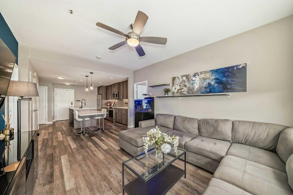 Welcome to Vivace North, where modern living meets city convenience! Located in the highly desirable community of West Springs, this stunning condo is the perfect spot for those seeking the best of both worlds. Situated just a stone's throw away from Calgary's hottest restaurants and pubs, including Mercato West, Vin Room, Blanco, Fergus & Bix, Una Pizza, 722, and many more, you'll never have to travel far to enjoy a night out. And with easy access to grocery stores, (Co-op, No frills) shops, and local schools, and with only a fifteen-minute drive to downtown Calgary. The mountains are just a short drive away, providing endless opportunities for hiking, skiing, and other outdoor activities. A large foyer opens to a spacious, open plan that places the kitchen in the center of the living and cooking areas, ideal for entertaining. Featuring knockdown ceilings, LVP flooring, stainless steel appliances, eating bar, modern quartz counters, extended height cabinets with under cabinet lighting, This home has two bedrooms one with a jack and jill bathroom sharing access with the second bedroom and the common area, whereas the master bedroom is accompanied by an executive ensuite with a spacious walk in shower, walk through closets both bedrooms have their own private balcony. This unit comes with in-suite laundry, a storage locker, bike locker, and tandem double parking stalls. Don't miss your chance to experience luxury living in one of Calgary's most desirable neighborhoods. Call your favorite agent today to book your private viewing of this stunning condo at Vivace North!