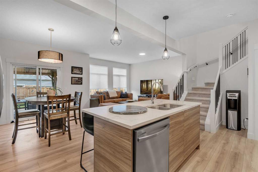 The main floor is ideal for both daily living and entertaining, featuring a spacious living and dining area that flows seamlessly together. The kitchen stands out with its stylish two-tone cabinetry, central island with quartz countertops, stainless steel appliances, and a corner walk-through pantry that conveniently connects to the mudroom and attached double garage. A 2-piece powder room completes the main level. Upstairs, you’ll find a well-designed layout that provides privacy and functionality for the whole family. The primary suite is thoughtfully separated from the other bedrooms and includes a 4-piece ensuite with a tub/shower combo and ample closet space. Two additional good-sized bedrooms share another 4-piece bath, perfect for kids or guests. The upper-level laundry makes chores a breeze, while the loft/bonus room offers extra flexibility—an ideal spot for family movie nights, a kids’ play zone, or a quiet homework space. The basement remains undeveloped and ready for your ideas, offering the potential to add a future rec room, bedroom, gym or all of the above! Outside, enjoy a low-maintenance backyard with a deck and built-in BBQ gas line, plus a gravel fire pit area—a perfect setup for relaxing summer evenings or hosting friends around the fire. Located in the growing and family-friendly community of Cobblestone Creek, this home combines comfort, functionality, and style. With easy access to parks, pathways, and nearby amenities, it’s the perfect choice for families, first-time buyers, or anyone looking for a newer home without the wait of building.