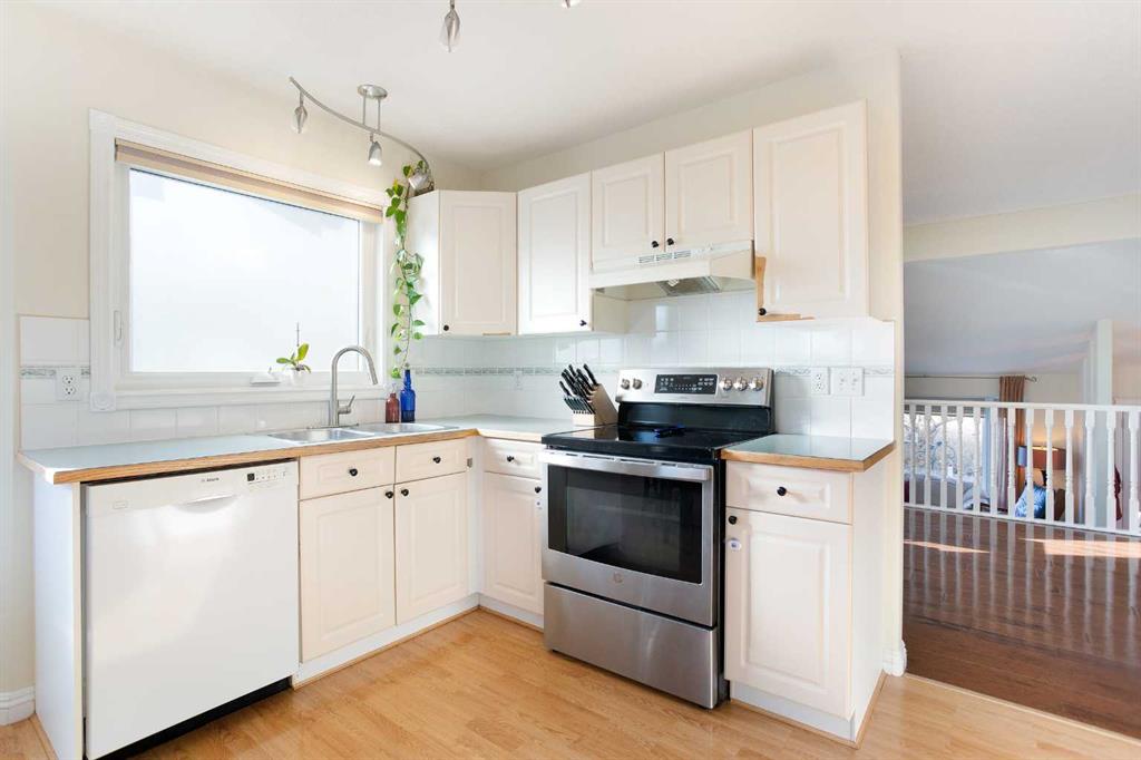Experience the charm of this 2,640 square foot home in Airdrie's Canals by CHECKING OUT THE 3-D TOUR! This well-maintained bi-level home features a family-friendly layout, vaulted ceilings, hardwood floors, and a finished basement. When you first walk into the home, you'll notice a large front entry with tile floors, and a spacious living room with a gas fireplace and enough room to seat the whole family. Up the stairs, you'll find a cozy reading nook that could also be used as a formal dining room, or home office. The kitchen offers style and function with its classic white cabinets and functional working triangle. You'll also find an abundance of natural light, a dining nook, and a patio door leading onto your private back deck. The upper level is where you'll also find three nicely sized bedrooms and one large 4-piece bathroom. The primary suite feels like a true sanctuary with the calming paint colours, skylight, and 3-piece ensuite (complete with a stand-alone shower and skylight). The lower level is built for entertaining with a huge flex room that features architectural coffered ceilings, newer carpeting, newer windows, built-in surround sound speakers, and a gas fireplace. You'll also find a fourth substantial bedroom, a massive storage room, a large laundry room, and a 3-piece bathroom, adding to the charm of this stunning home. Practicality meets convenience with an insulated double attached garage and a nicely sized yard featuring an underground sprinkler system. Conveniently located near schools, playgrounds, walking paths, and parks. With fantastic access to routes in and out of the city, your commute just got easier. This is a rare opportunity to own a beautifully maintained home in an exceptional location. Be sure to CHECK OUT THE 3-D Tour. Don't wait - book your private showing today!