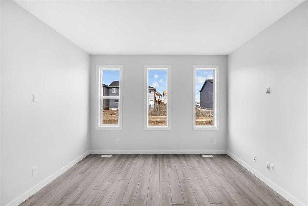 OPEN HOUSE SATURDAY NOVEMBER 1st 1:00 - 3:00 PM. Welcome to this impressive, newly built home located in the sought after NW community of Ambleton. Thoughtfully crafted with modern finishes and a functional layout, this home offers exceptional comfort and style. Step inside to find luxury vinyl plank flooring extending throughout the main floor, leading you into a bright and open layout that includes a spacious living room, dining area, modern kitchen, and a flex room—perfect for a home office, playroom, or den. The kitchen is a chef’s dream, showcasing quartz countertops, stainless steel appliances, a gas stove, full ceiling-height cabinets with elegant crown molding, and a glass-door pantry for added storage. Upstairs, soft plush carpets and large windows throughout bring comfort and natural light into all three generously sized bedrooms. The primary bedroom is impressively sized, easily fitting a king-size bed with nightstands and dressers, and features a walk-in closet with a window and a large ensuite. The upper level also includes a shared 4-piece bathroom and a separate laundry room. The unfinished basement offers high ceilings, rough-ins, and a separate side entrance, providing endless opportunities for future development, including a potential legal suite (subject to city approval and permitting). Out back, you'll find a double parking pad, ready for your future double detached garage. This home is ideally located within walking distance of a playground and just minutes to local schools, transit, and top shopping destinations such as Carrington Plaza and Creekside Shopping Centre, Walmart, Beacon Hill Costco, and T&T Supermarket. Plus, with easy access to Stoney Trail and Deerfoot Trail, commuting around the city is a breeze. This is your chance to own a stylish, move-in-ready home in one of Calgary’s most exciting new communities. Schedule your private showing today!