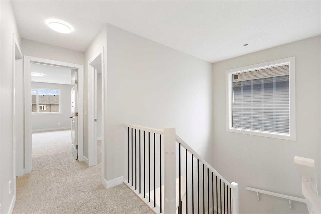 BRAND NEW HOME by Douglas Homes, Master Builder in central Greystone, short walking distance to parks, the Bow River, major shopping & interconnected pathway system. Featuring the Canberra with main floor forward enclosed Flex Room/4th Bedroom & separate side entry on an R-MX zoned home site for POTENTIAL future lower level suite. NOTE: a secondary suite would be subject to approval and permitting by the city/municipality. This gorgeous 3 bedroom, 2 & 1/2 half bath home offers 1490 sq ft of living space. This home is located on a Agate Road which provides immediate access to the Children's Park at the end of the street and easy access interconnective pathway system, perfect for those looking for a outdoor lifestyle. Loads of Designer & upgraded features in this beautiful, open floor plan. The main floor greets you with 8' front door, soaring 9' ceilings, oversized windows, built-in niches & fireplace. Gleaming Hardwood floors flow through the kitchen, hall & nook adding a feeling of warmth & style. At the front of the home you'll find an enclosed bright Flex Room (could also be a main floor bedroom) with 8'0" French Door and storage closet for the work from home crowd. The Kitchen is completed with Quartz Countertops, two tone Kitchen Cabinets, 42" uppers with decorative enclosed bulkhead, plenty of drawers including Pots & Pan drawers, soft close doors & drawers & new stainless steel Kitchen appliance package. Upstairs you'll find a generous Primary Bedroom with Ensuite - Quartz Counters with double vanities, 5' shower with Designer tiled walls & toilet in its own private doored room all completed with ceramic tile flooring & large walk-in closet accessed from the bedroom. The 2nd floor is completed by two good size additional bedrooms, main bath tub/shower combination with tiled walls, window, Quartz countertop, undermounted sink & ceramic tile flooring. You will love the convenience of 2nd Floor Laundry Room for side by side laundry completed with ceramic floor tile. This is a very popular plan, great for young families, investors or the down sizers. Spacious, Beautiful and Elegant! The perfect place for your perfect home. Call today! Photos are from prior build & are reflective of fit, finish & included features. Note: Front elevation of home & interior photos are for illustration purposes only. Actual elevation style, interior colors/finishes, & upgrades may be different than shown & the Seller is under no obligation to provide them as such. Directions: Come to the Show Home first located at 500 River Avenue. Showings only during Show Home hours & days. THIS HOME IS UNDER CONSTRUCTION