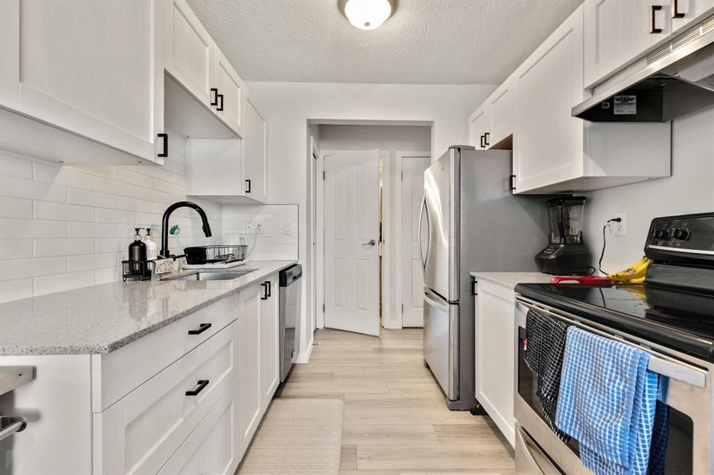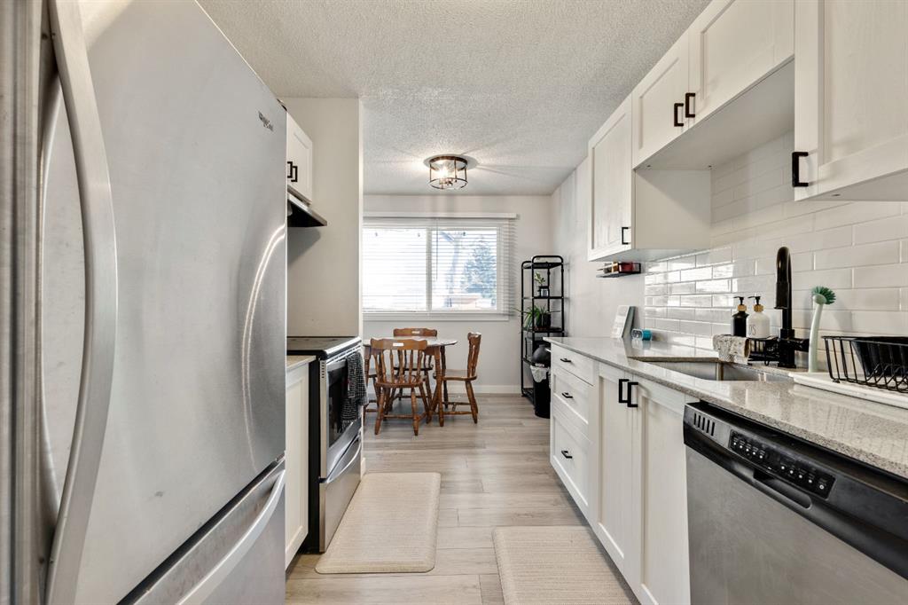 Investors & First-Time Buyers – No Condo Fees! Available for quick possession and welcoming to pets, this beautifully updated townhome offers unbeatable value with style and comfort throughout. Inside, the kitchen stands out with stainless steel appliances, modern cabinetry, quartz counters, a designer backsplash, and a deep basin sink with upgraded faucet. A full pantry adds even more storage. Next to the kitchen, the refreshed half bath features new quartz counters, sink, faucet, and toilet. The main floor living area is bright and versatile, perfect for different furniture layouts. Even the fireplace adds character, whether used as-is or reimagined as a cozy candle feature!! New window coverings, luxury vinyl plank flooring, and a fresh coat of paint on the main and upper levels tie everything together with a clean, contemporary feel.