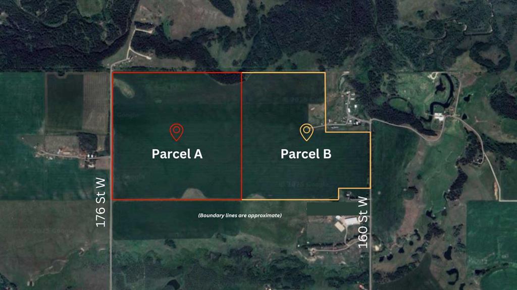WELCOME to a UNIQUE opportunity to own 158.74 ACRES of un-subdivided, PRIME Land just off 176 Street W (Straight NORTH of HIGHWAY 22X - LESS THAN A MILE FROM CALGARY CITY LIMITS!!), brimming with POTENTIAL for development. Parcel A in the cover photo is the parcel listed here. Whether you're looking to develop, conserve, or diversify, this SUBSTANTIAL TRACT offers REMARKABLE FLEXIBILITY to bring your VISION to life!! Diverse terrain for future zoning, utility setups, or land use adjustments. Ideal for Agriculture, Recreation, or long-term APPRECIATION; this Land can adapt to your needs while remaining a VALUABLE ASSET. Just a short drive WEST of CALGARY this property contains SERENE NATURAL BEAUTY w/CONVENIENCE of nearby city access making it an EXCEPTIONAL opportunity for those seeking a VERSATILE development potential in a DESIRABLE location. EASY ACCESSIBLE via PAVED roads leading directly to the property. There are 3 ROBUST water wells, each delivering 10 gallons per minute (GPM), ENSURING a RELIABLE water supply. The GENTLY rolling terrain with SCENIC VIEWS of the nearby MOUNTAINS, adds SIGNIFICANT appeal to any future development plans. ENJOY the PANORAMIC VIEWS creating an ideal setting for RESIDENTIAL, RETREAT SPACES, or even RECREATIONAL uses. It can be PERFECT for future subdivisions or COUNTRY ESTATE potential. With the 3 STRONG water wells in place, + PAVED road access, the land is PRIMED for various uses, whether Residential, Agricultural, or Eco-Friendly Tourism. This is an unparalleled combination of SOUGHT-AFTER Mountain Views, Proximity to Calgary, + Robust water access, making it a RARE GEM for anyone looking to own a SIGNIFICANT piece of ALBERTA'S PRIME land. The Parcel adjacent to this one is also for sale by the same owner. Don't miss out on the chance to SHAPE this land into your DREAM!!