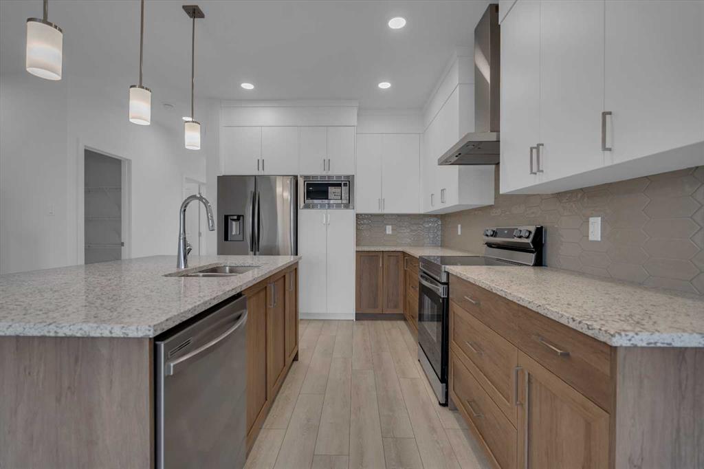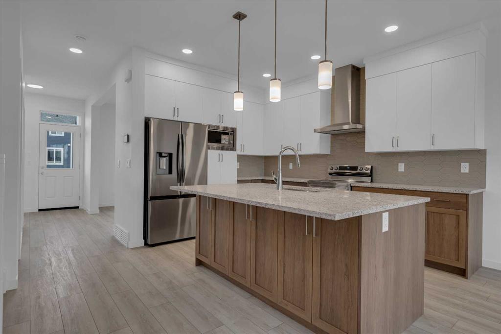 Welcome to Your Dream Home in Calgary's most sought after lake community in MAHOGANY – Where Luxury Meets Practical Living! Step into this brand new, never lived in masterpiece built by EXCEL HOMES – the upgraded Berkley model offering 1870 sf of contemporary design, exceptional functionality AND a 2 bedroom LEGAL BASEMENT SUITE W/PRIVATE ENTRY. Nestled in Calgary’s vibrant LAKE COMMUNITY, you’ll enjoy quick access off Stoney Trail or Deerfoot Trail. From the moment you walk in, this home impresses with its thoughtful layout and premium finishes. The open-concept floor plan seamlessly connects the living room, dining area, and showstopper kitchen – the true heart of the home. Cook like a pro in your chef-inspired kitchen with upgraded stainless steel appliances including built-in microwave, chimney-style hood fan, and an abundance of cabinets and deep pot drawers...and a massive island w/even more storage!. You'll also find a versatile flex room at the back of the house - perfect for home office, playroom or guest bedroom. Upstairs, the second level offers three spacious bedrooms including a stunning primary suite with a walk-in closet and dual sink ensuite. A vaulted bonus room with pot lighting adds an elevated family retreat, and the convenient upper-level laundry room makes day-to-day living easier. Thinking about rental income or extended family options? This home offers a LEGAL TWO BEDROOM SUITE, all done to upstairs standards and a private exterior side entrance. This is an amazing opportunity for rental income or extended family! As a Certified Built Green home, you’ll benefit from energy-saving features and smart home tech, including Ring doorbell, Wi-Fi-enabled garage opener, smart thermostat, extra CAT6 and USB outlets, plus 9' knockdown ceilings, metal stair railings, and luxury vinyl plank flooring on the main level. Whether you're a growing family, savvy investor, or multi-generational household, this is the home you've been waiting for. Move in, unpack, and start living your best life in Mahogany.