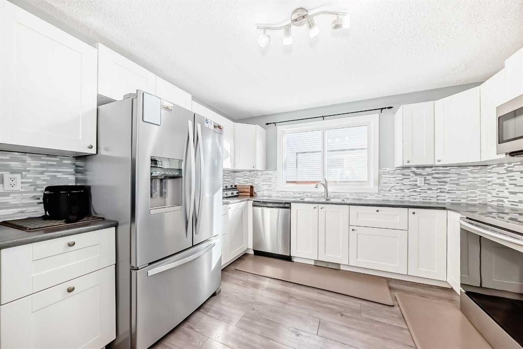 Step into comfort and style with this beautifully updated two-storey townhouse offering over 1,105.7 sq. ft. of inviting living space in a convenient and well-connected NE location. Designed for effortless living, this home blends functionality with warmth—perfect for families, first-time buyers, or anyone seeking low-maintenance living with modern charm. The main floor welcomes you with a bright open-concept layout, featuring the living area, dining area, an eat-in kitchen with a breakfast bar and complete with a pantry. The large windows flood the space with natural light, creating a cozy yet airy feel throughout. Step outside through the patio doors to your private deck, the perfect spot for morning coffee or weekend barbecues. Upstairs, you’ll find three comfortable bedrooms and a full bathroom. Each room offers generous closet space and a sense of comfort that makes this townhouse truly feel like home. The fully finished basement is where you'll find the laundry room, a 3-pc bathroom, a bar, and a spacious family room, perfect for either entertaining or simply relaxing at home. Located just minutes from schools, parks, shopping, and public transit, this property offers the best of convenience and community. Book you showing today!