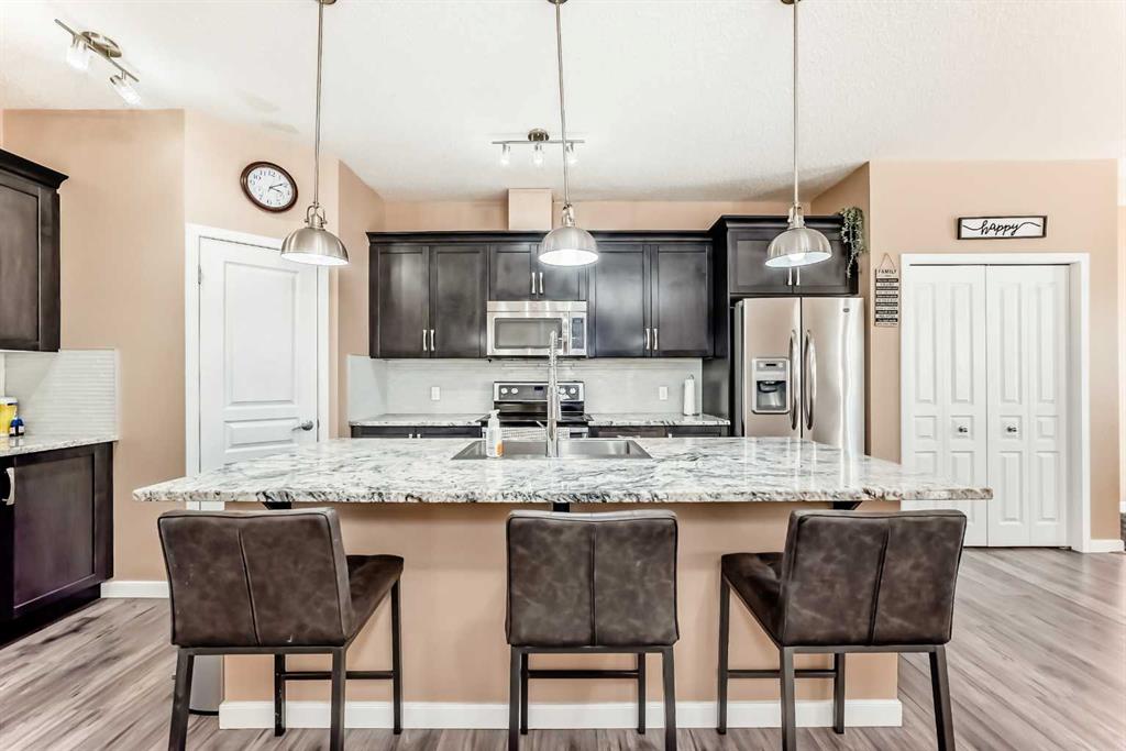 Price REDUCED!! **BRIGHT, BEAUTIFUL, WELL MAINTAINED HOME (5-Bedrooms + 3.5 Bath) with FULLY DEVELOPED BASEMENT w/ 2 BEDROOMS and OVERSIZED DOUBLE DETACHED GARAGE in the LAKE COMMUNITY OF AUBURN BAY** Welcome to this STUNNING home with over 2,445Sqft of living space - this highly sought-after floor plan is bursting with upgrades. Just few steps away from Auburn Bay lake, parks, walking paths, school and playgrounds. Main level consists of living room, separate den, dining area, powder room and a great size kitchen w/ walk-in-Pantry. The modern L-shaped kitchen offers a built-in microwave, large island with breakfast bar, stainless steel appliances and high ceiling. Take the staircase upstairs to find 3 large bedrooms with plenty of natural light + BONUS Room! The primary bedroom has a private balcony, 4 piece ensuite, and walk-in closet. Two more bedrooms, a full 3-pc bathroom and laundry room complete the upper level. Additional features include LVP FLOORING THROUGHOUT THE HOME including basement, upgraded lighting throughout, and granite countertops, NEW DISHWASHER (2025), NEW SAMSUNG WASHER/DRYER (2025) in a single unit, and among many others. This stunning home comes with a FULLY FINISHED basement with a good size recreation/family room with wet BAR, 2 bedrooms, a 3-piece bathroom, and an extra storage room. The West-facing Backyard is fully fenced, with a large deck and a private gazebo. This home is conveniently located just minutes away from lots of amenities including grocery stores, restaurants/pubs, shopping, schools and more. With quick access to 52nd Street, Stoney Trail, and Deerfoot – Making commuting a breeze. Don’t miss this opportunity to own a stunning home in a vibrant community! Call to book your showing today! *Some Photos are virtually staged.